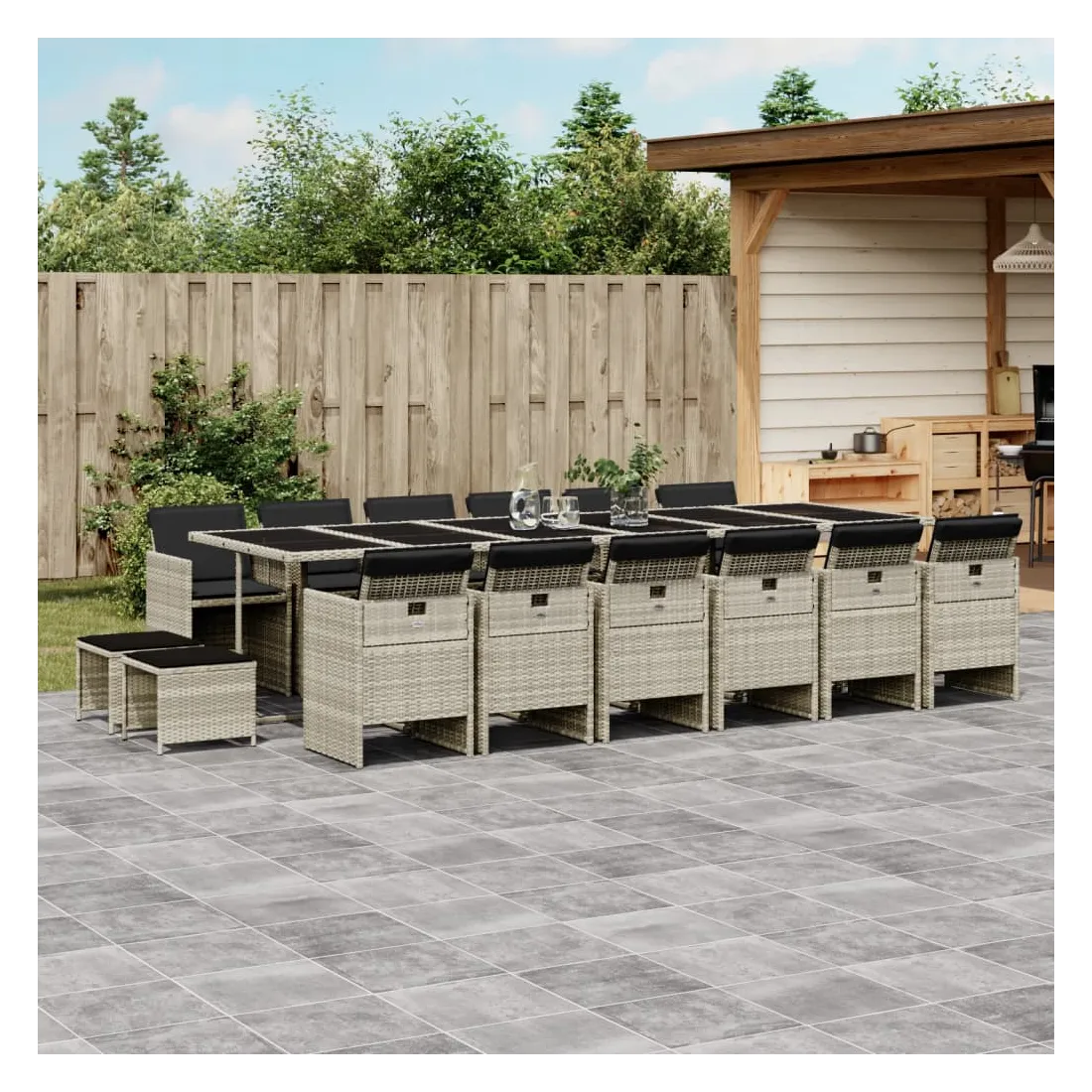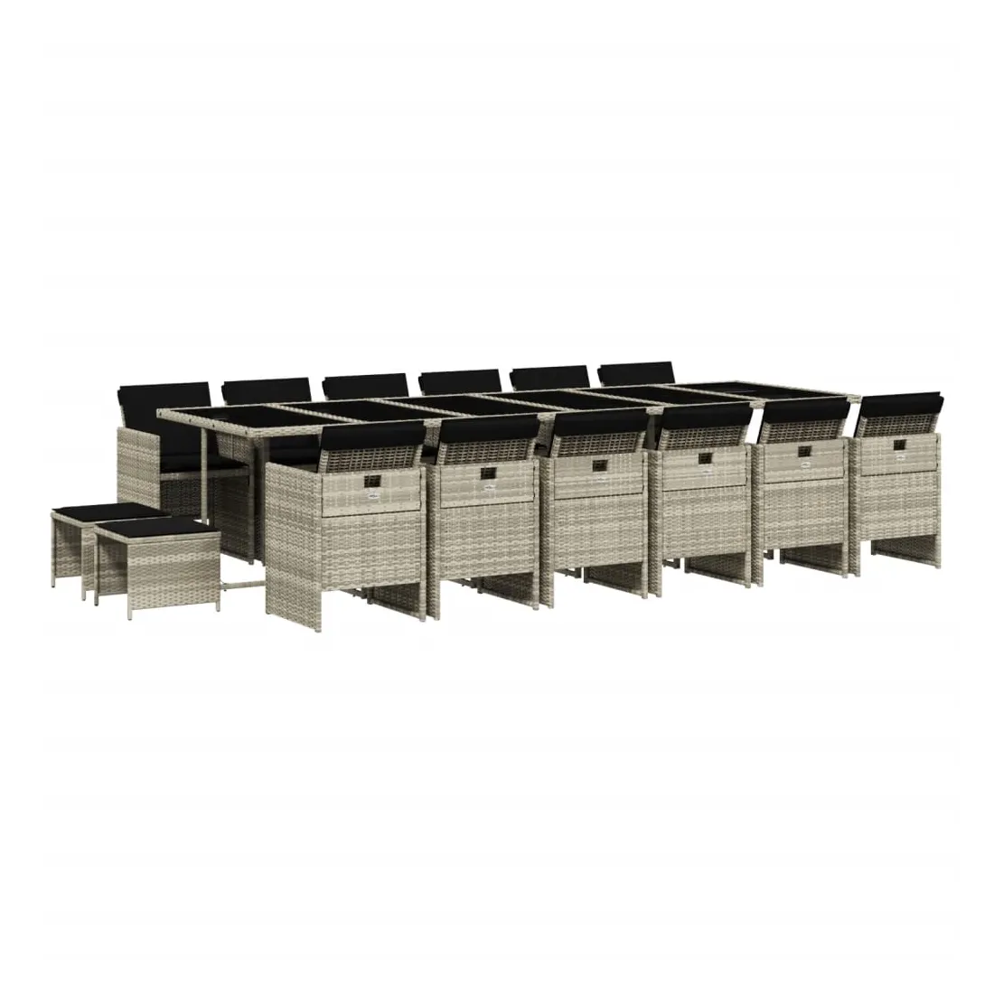 Ensemble à manger de jardin et coussins 17 pcs gris clair rotin
