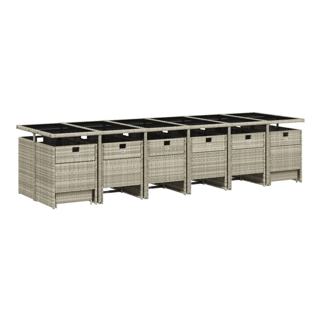 vidaXLCet ensemble de salle à manger de jardin est un excellent choix pour les repas en plein air ou pour vous détendre dans le jardin, dans l'arrière-cour ou sur la terrasse. Matériau durable : la résine tressée, également connue sous le nom de poly rotin, est un matériau synthétique solide et nécessitant peu d'entretien qui ressemble au rotin naturel. Il est léger, facile à nettoyer et couramment utilisé pour les meubles d'extérieur en raison de sa durabilité et de ses propriétés de résistance aux intempéries.Rangement compact : ces chaises sont dotées d'un dossier rabattable, ce qui permet de les ranger facilement sous la table. Une fois pliées, elles se rangent parfaitement sous la table, formant un cube peu encombrant. De plus, les tabourets peuvent également être rangés sous les chaises, maximisant encore davantage l'efficacité de l'espace. Expérience d'assise confortable : ce mobilier d'extérieur, doté de coussins épais, offre une expérience d'assise confortable.Housse amovible et lavable : ces coussins de siège sont dotés de housses amovibles pour un lavage et un entretien faciles.Dessus en verre : le dessus de la table d'extérieur est fabriqué en verre trempé solide et durable, ce qui le rend facile à nettoyer avec un chiffon humide et ajoute une touche d'élégance à votre espace extérieur. Bon à savoir : Pour que vos meubles d'extérieur restent beaux, nous vous recommandons de les protéger avec une housse imperméable.