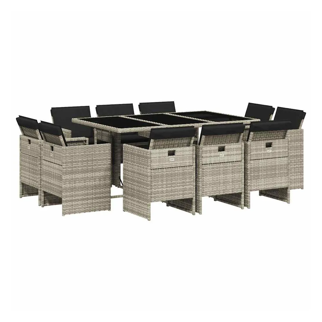 Ensemble à manger de jardin 11pcs avec coussins gris poly rotin
