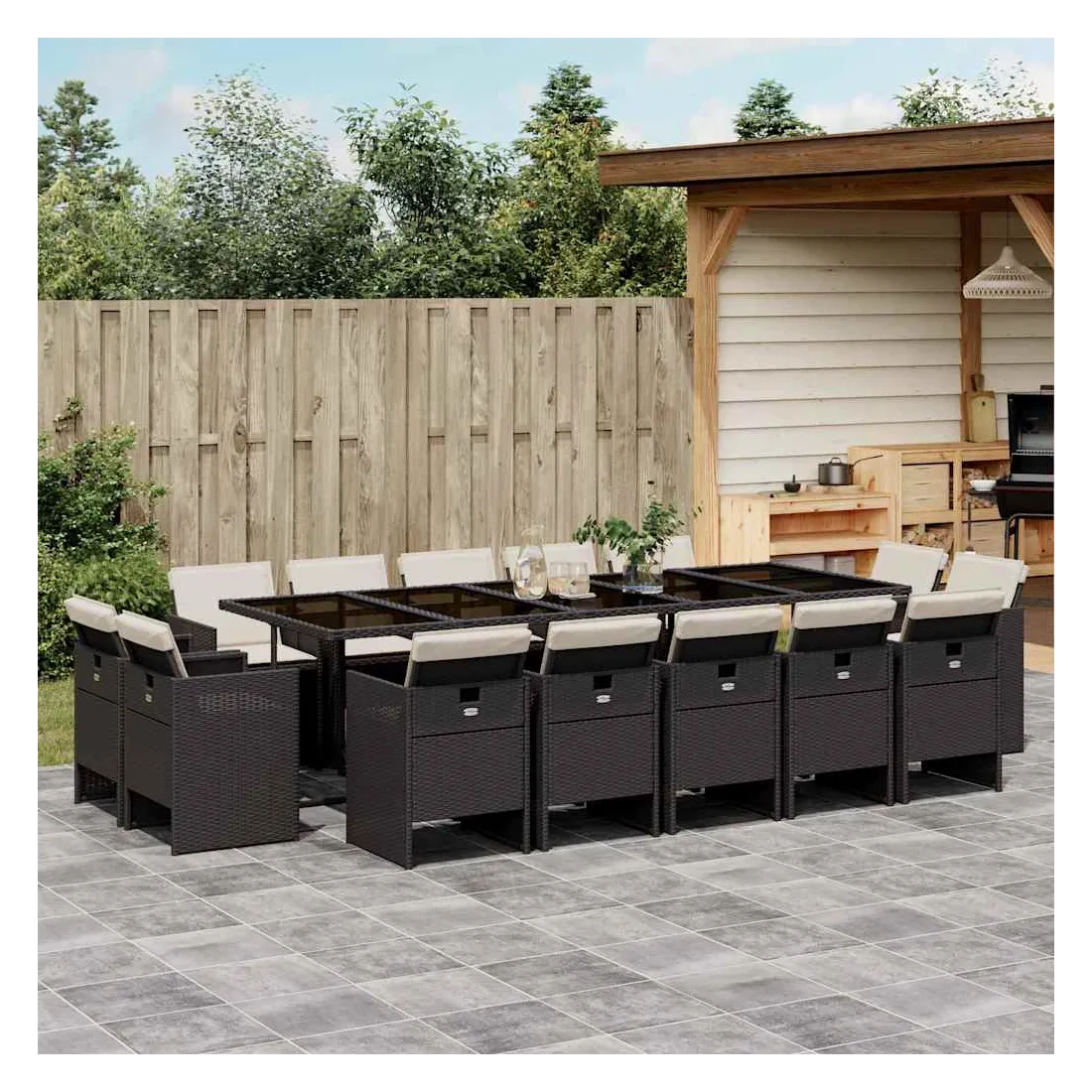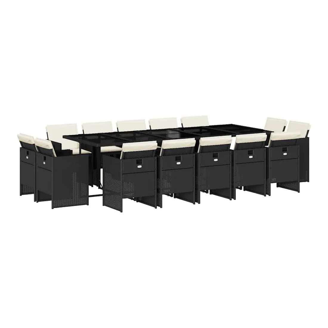 Ensemble à manger de jardin 15 pcs coussins noir résine tressée