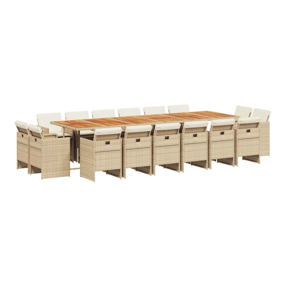 Cet ensemble de salle à manger de jardin est un excellent choix pour les repas en plein air ou pour vous détendre dans le jardin, dans l'arrière-cour ou sur la terrasse. Matériau durable : la résine tressée, également connue sous le nom de poly rotin, est un matériau synthétique solide et nécessitant peu d'entretien qui ressemble au rotin naturel. Il est léger, facile à nettoyer et couramment utilisé pour les meubles d'extérieur en raison de sa durabilité et de ses propriétés de résistance aux intempéries.Rangement compact : ces chaises sont dotées d'un dossier rabattable, ce qui permet de les ranger facilement sous la table. Une fois pliées, elles se rangent parfaitement sous la table, formant un cube peu encombrant. Expérience d'assise confortable : ce mobilier d'extérieur, doté de coussins épais, offre une expérience d'assise confortable.Housse amovible et lavable : ces coussins de siège sont dotés de housses amovibles pour un lavage et un entretien faciles.Dessus stable et facile à nettoyer : cette table de jardin a un dessus en bois d'acacia robuste, durable et facile à nettoyer avec un chiffon humide. Bon à savoir : Pour que vos meubles d'extérieur restent beaux, nous vous recommandons de les protéger avec une housse imperméable.