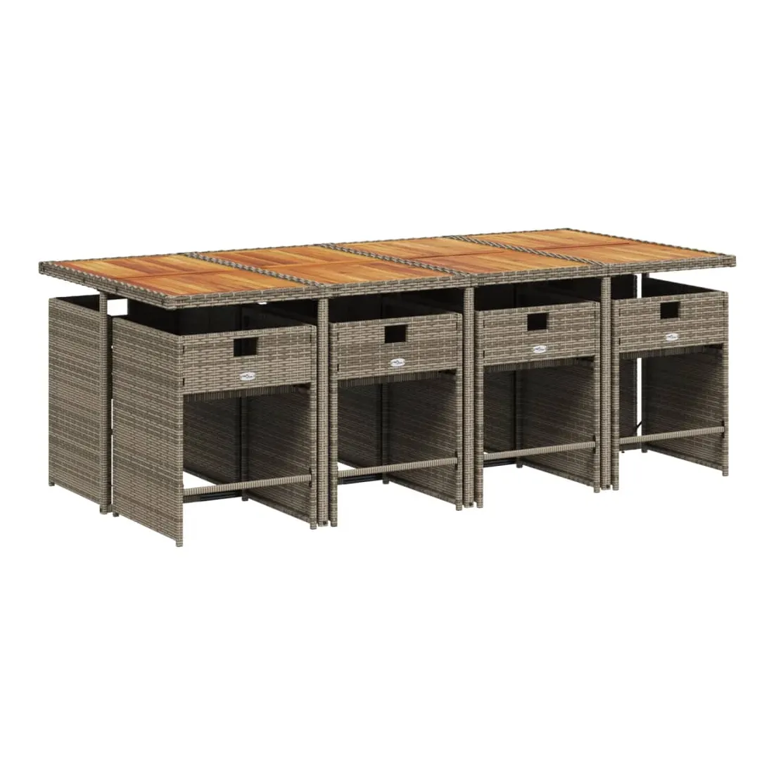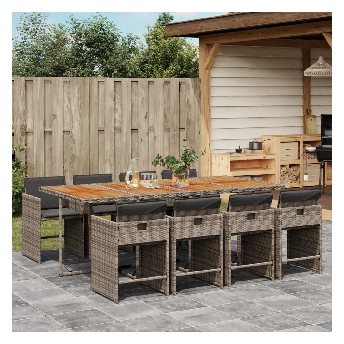 Ensemble à manger de jardin 9 pcs coussins gris résine tressée