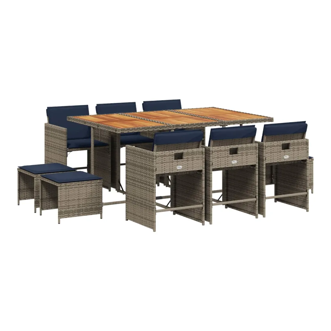 Ensemble à manger de jardin 11 pcs coussins gris résine tressée