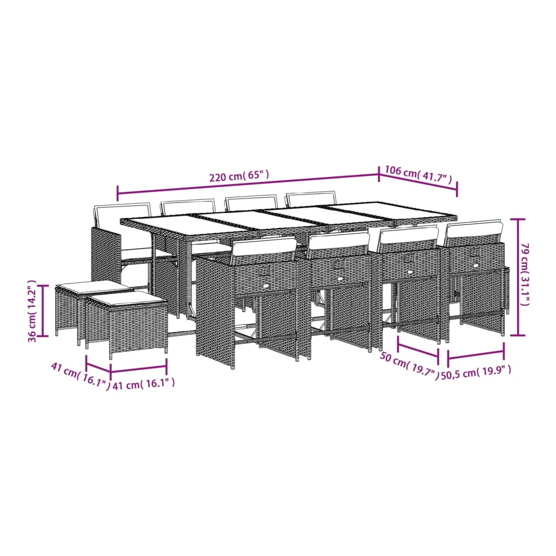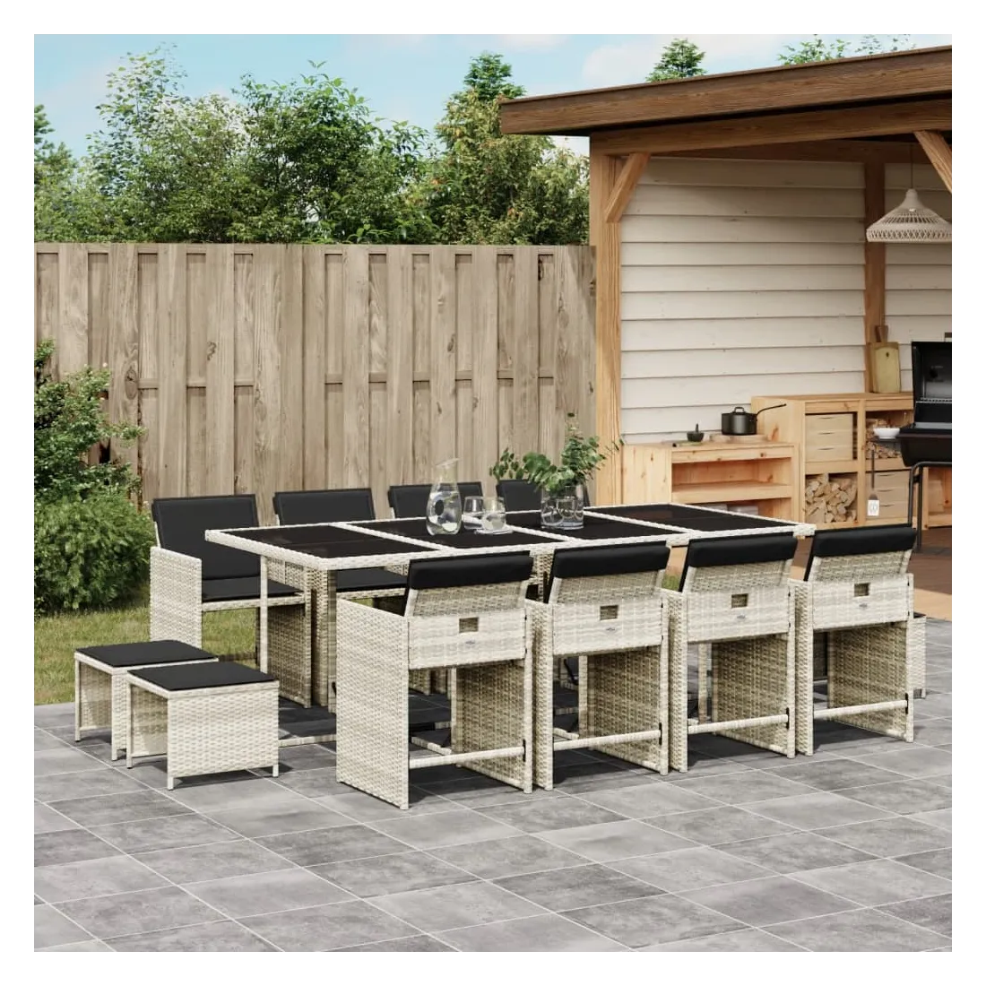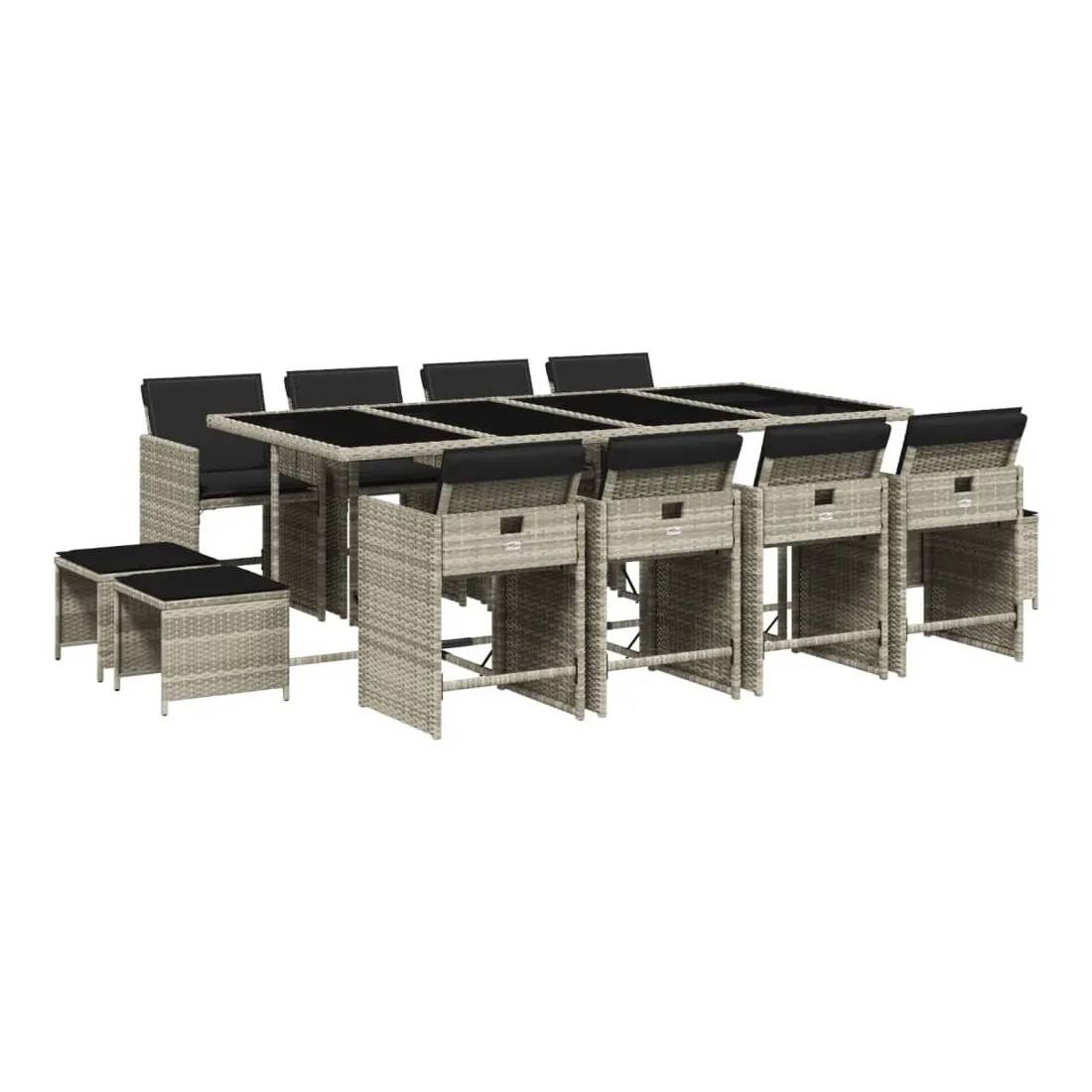 Ensemble à manger de jardin et coussins 13 pcs gris clair rotin