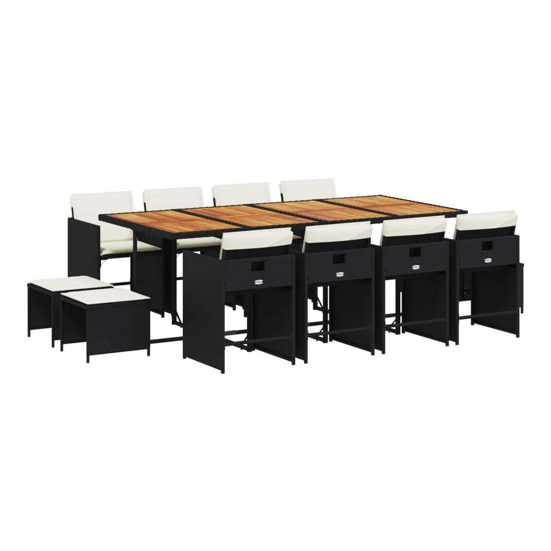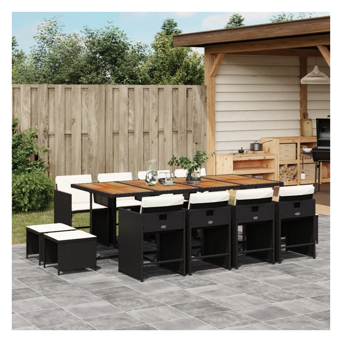 Ensemble à manger de jardin 13 pcs coussins noir résine tressée