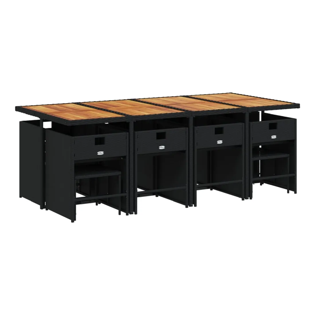 vidaXLCet ensemble de salle à manger de jardin est un excellent choix pour les repas en plein air ou pour vous détendre dans le jardin, dans l'arrière-cour ou sur la terrasse. Matériau durable : la résine tressée, également connue sous le nom de poly rotin, est un matériau synthétique solide et nécessitant peu d'entretien qui ressemble au rotin naturel. Il est léger, facile à nettoyer et couramment utilisé pour les meubles d'extérieur en raison de sa durabilité et de ses propriétés de résistance aux intempéries.Rangement compact : ces chaises sont dotées d'un dossier rabattable, ce qui permet de les ranger facilement sous la table. Une fois pliées, elles se rangent parfaitement sous la table, formant un cube peu encombrant. De plus, les tabourets peuvent également être rangés sous les chaises, maximisant encore davantage l'efficacité de l'espace.Expérience d'assise confortable : ce mobilier d'extérieur, doté de coussins épais, offre une expérience d'assise confortable.Housse amovible et lavable : ces coussins de siège sont dotés de housses amovibles pour un lavage et un entretien faciles. Les housses de coussin de chaise ont un rabat à l'arrière pour une fixation facile aux chaises.Dessus stable et facile à nettoyer : cette table de jardin a un dessus en bois d'acacia robuste, durable et facile à nettoyer avec un chiffon humide. Bon à savoir : Pour que vos meubles d'extérieur restent beaux, nous vous recommandons de les protéger avec une housse imperméable.