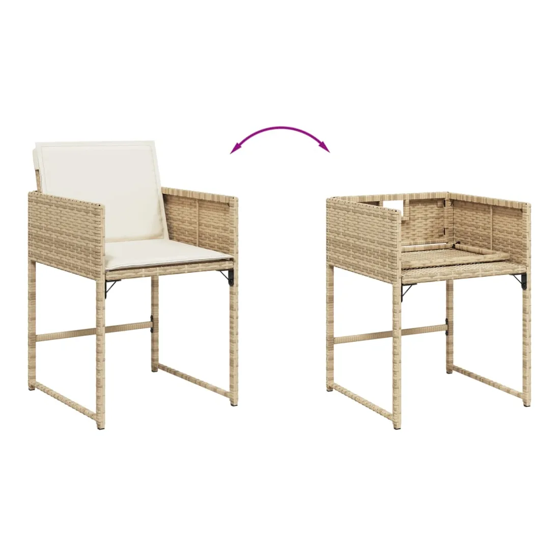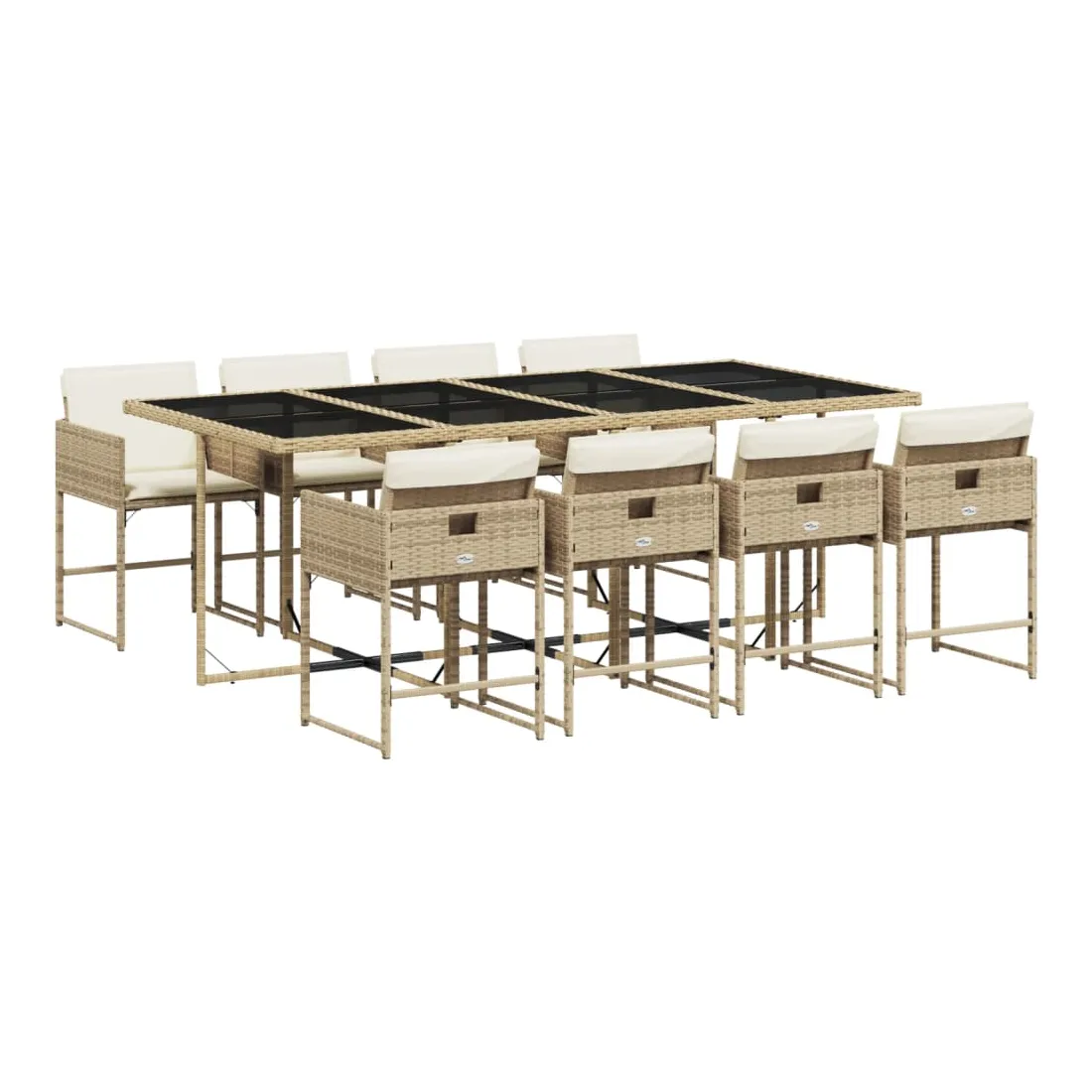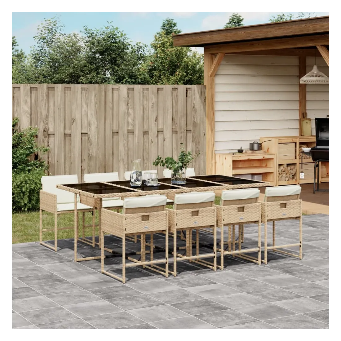 Ensemble à manger de jardin et coussins 9 pcs beige Poly rotin
