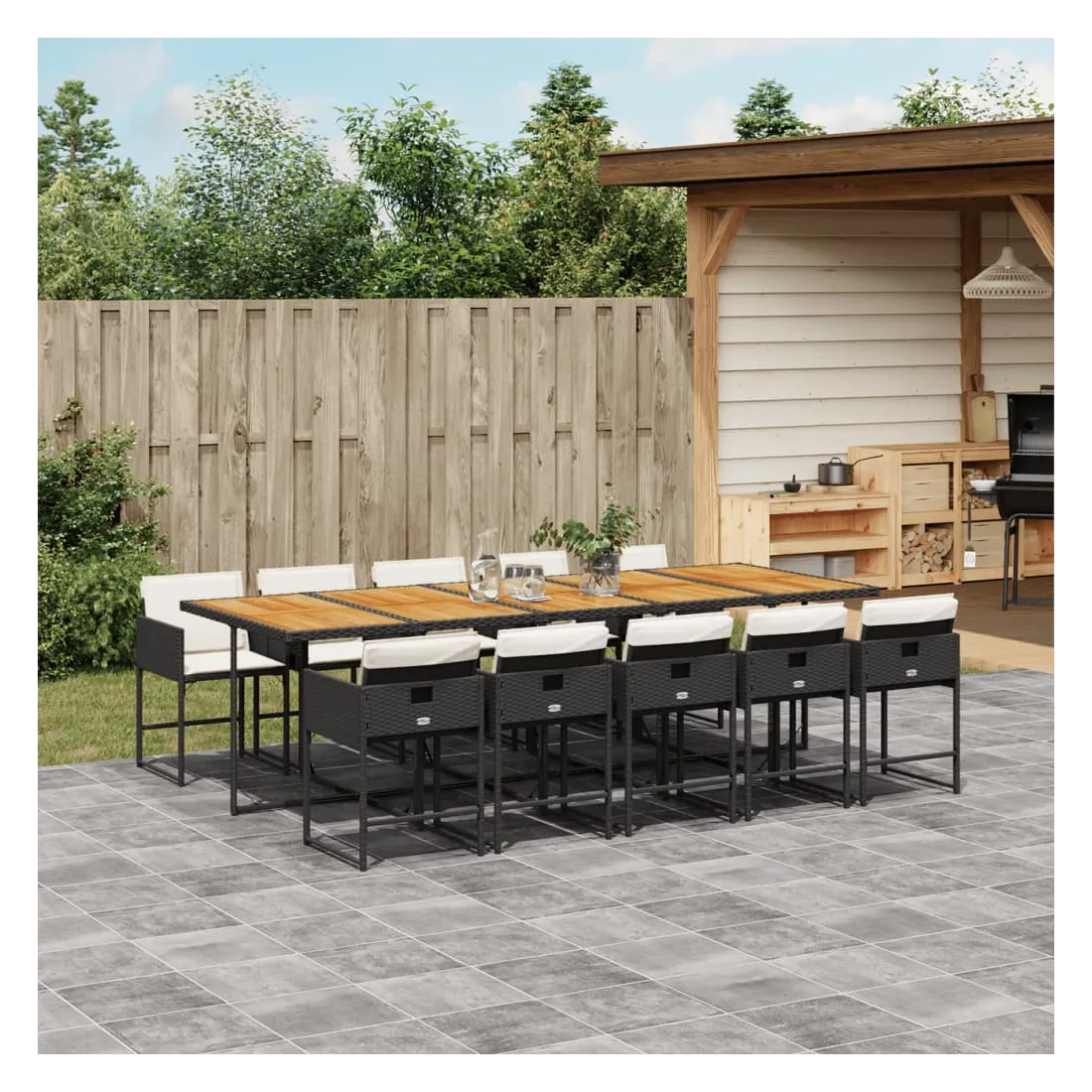 vidaXLCet ensemble de salle à manger de jardin est un excellent choix pour les repas en plein air ou pour vous détendre dans le jardin, dans l'arrière-cour ou sur la terrasse. Matériau durable : la résine tressée, également connue sous le nom de poly rotin, est un matériau synthétique solide et nécessitant peu d'entretien qui ressemble au rotin naturel. Il est léger, facile à nettoyer et couramment utilisé pour les meubles d'extérieur en raison de sa durabilité et de ses propriétés de résistance aux intempéries.Rangement compact : ces chaises sont dotées d'un dossier rabattable, ce qui permet de les ranger facilement sous la table. Une fois pliées, elles se rangent parfaitement sous la table, formant un cube peu encombrant.Expérience d'assise confortable : ce mobilier d'extérieur, doté de coussins épais, offre une expérience d'assise confortable.Housse amovible et lavable : ces coussins de siège sont dotés de housses amovibles pour un lavage et un entretien faciles. Les housses de coussin ont un rabat à l'arrière pour une fixation facile aux dossiers.Dessus stable et facile à nettoyer : cette table de jardin a un dessus en bois d'acacia robuste, durable et facile à nettoyer avec un chiffon humide. Bon à savoir :Pour que vos meubles d'extérieur restent beaux, nous vous recommandons de les protéger avec une housse imperméable.