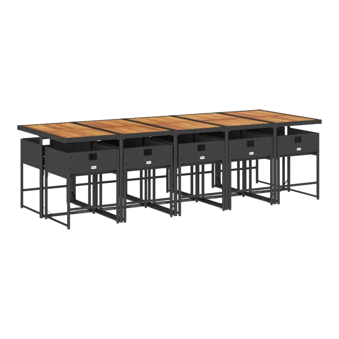 Ensemble à manger de jardin 11 pcs coussins noir résine tressée