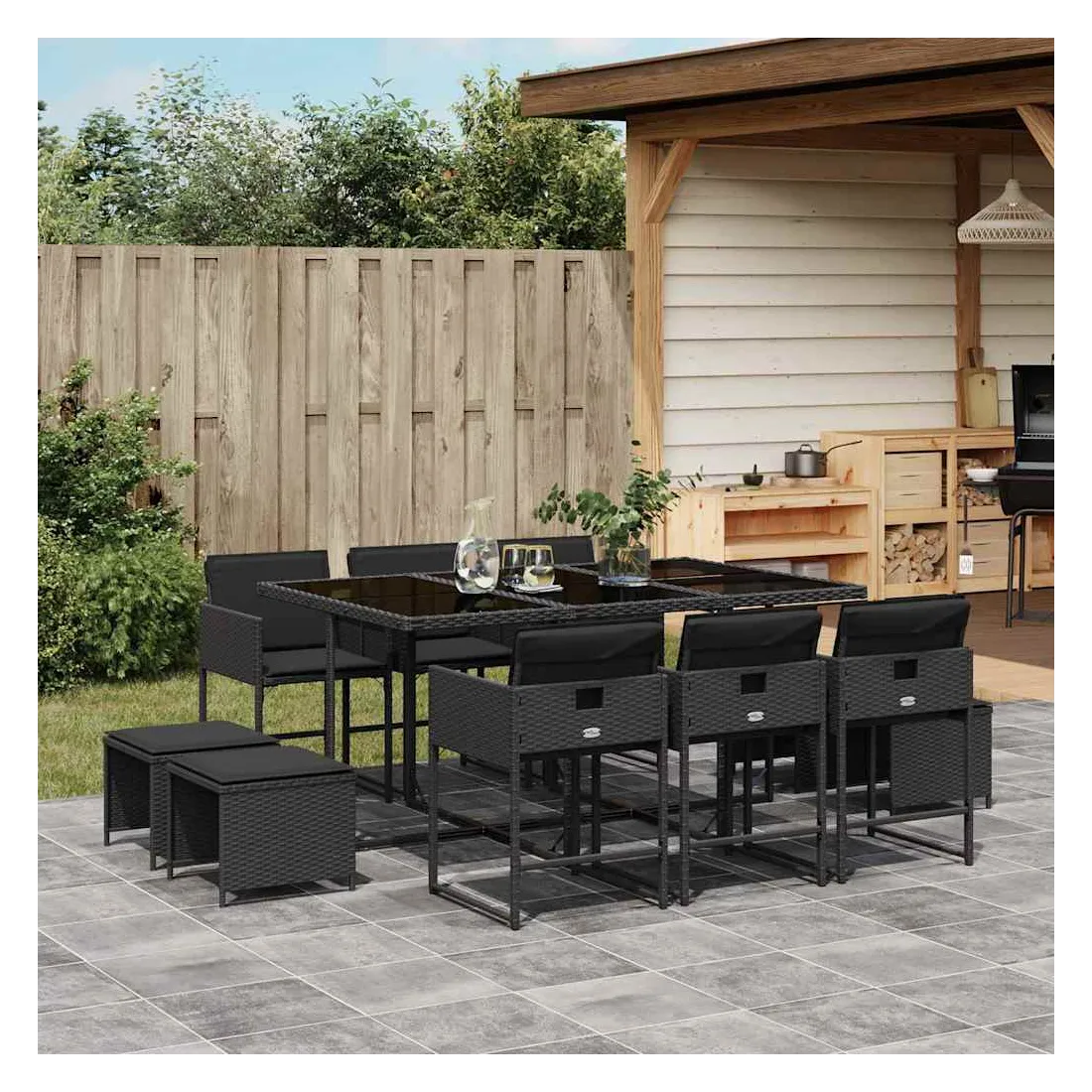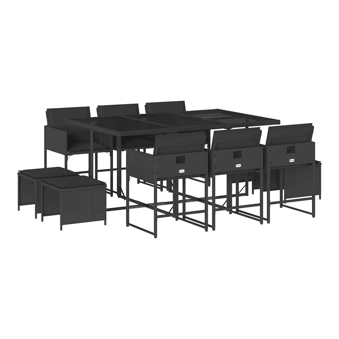 Cet ensemble de salle à manger de jardin est un excellent choix pour les repas en plein air ou pour vous détendre dans le jardin, dans l'arrière-cour ou sur la terrasse. Matériau durable : la résine tressée, également connue sous le nom de poly rotin, est un matériau synthétique solide et nécessitant peu d'entretien qui ressemble au rotin naturel. Il est léger, facile à nettoyer et couramment utilisé pour les meubles d'extérieur en raison de sa durabilité et de ses propriétés de résistance aux intempéries.Rangement compact : ces chaises sont dotées d'un dossier rabattable, ce qui permet de les ranger facilement sous la table. Une fois pliées, elles se rangent parfaitement sous la table, formant un cube peu encombrant. De plus, les tabourets peuvent également être rangés sous les chaises, maximisant encore davantage l'efficacité de l'espace.Expérience d'assise confortable : ce mobilier d'extérieur, doté de coussins épais, offre une expérience d'assise confortable.Housse amovible et lavable : ces coussins de siège sont dotés de housses amovibles pour un lavage et un entretien faciles. Les housses de coussin ont un rabat à l'arrière pour une fixation facile aux dossiers.Dessus en verre : le dessus de la table d'extérieur est fabriqué en verre trempé solide et durable, ce qui le rend facile à nettoyer avec un chiffon humide et ajoute une touche d'élégance à votre espace extérieur. Bon à savoir : Pour que vos meubles d'extérieur restent beaux, nous vous recommandons de les protéger avec une housse imperméable.