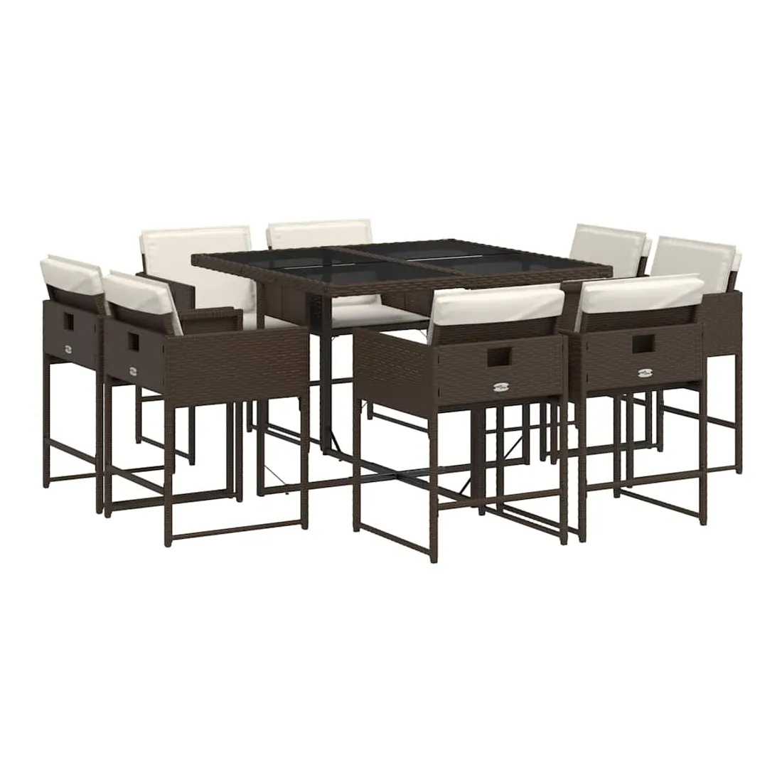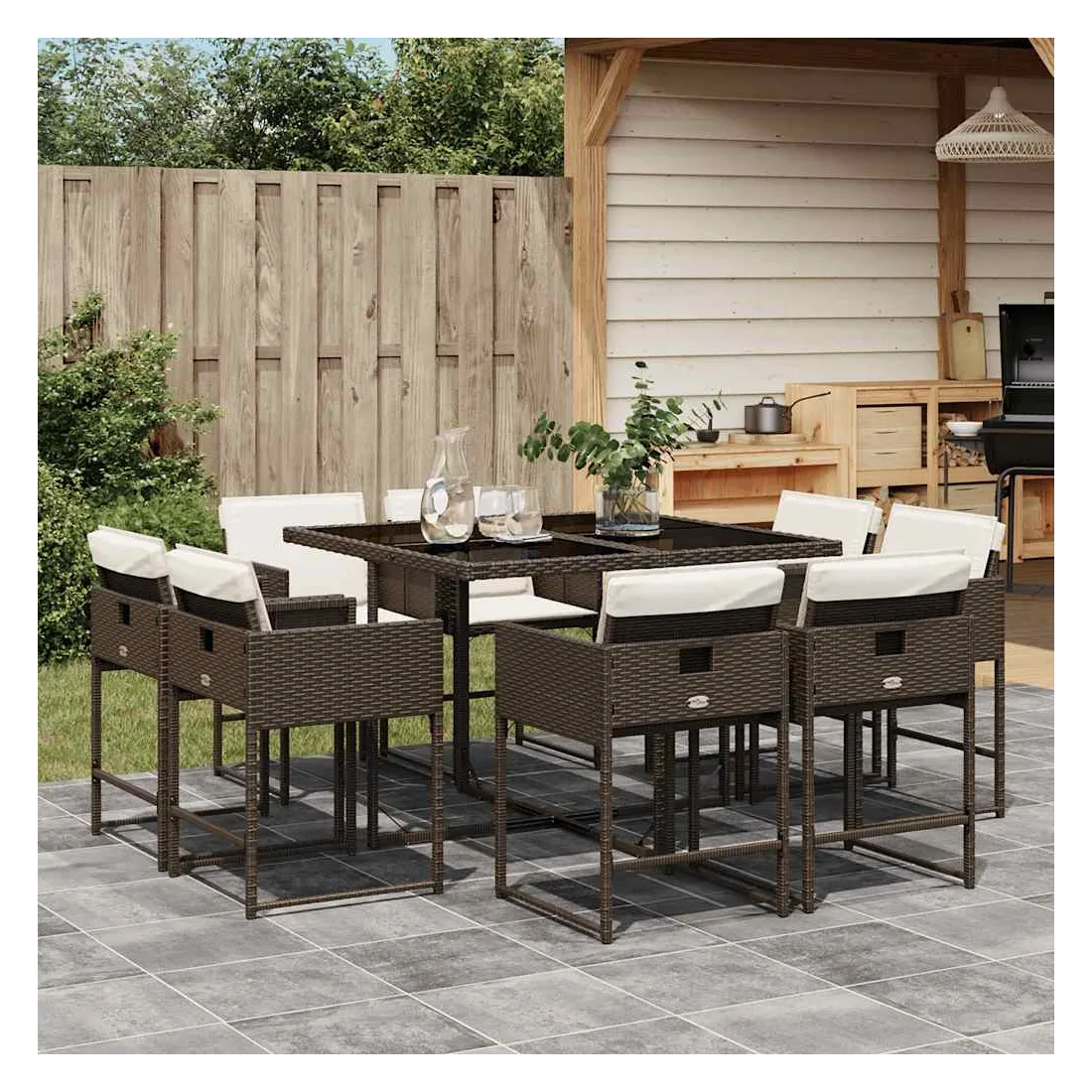Cet ensemble de salle à manger de jardin est un excellent choix pour les repas en plein air ou pour vous détendre dans le jardin, l'arrière-cour ou le patio. Matériau durable : la résine tressée, également connue sous le nom de poly rotin, est un matériau synthétique solide et nécessitant peu d'entretien qui ressemble au rotin naturel. Il est léger, facile à nettoyer et couramment utilisé pour les meubles d'extérieur en raison de sa durabilité et de ses propriétés de résistance aux intempéries.Rangement compact : ces chaises sont dotées d'un dossier rabattable, ce qui permet de les ranger facilement sous la table. Une fois pliées, elles se rangent parfaitement sous la table, formant un cube peu encombrant.Expérience d'assise confortable : ce mobilier d'extérieur, doté de coussins épais, offre une expérience d'assise confortable.Housse amovible et lavable : ces coussins de siège sont dotés de housses amovibles pour un lavage et un entretien faciles. Les housses de coussin de chaise ont un rabat à l'arrière pour une fixation facile aux chaises.Dessus en verre : le dessus de la table de jardin est fabriqué en verre trempé solide et durable, ce qui le rend facile à nettoyer avec un chiffon humide et ajoute une touche d'élégance à votre espace extérieur. Bon à savoir :Pour que vos meubles d'extérieur restent beaux, nous vous recommandons de les protéger avec une housse imperméable.