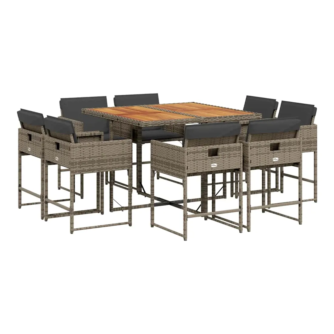 Cet ensemble de salle à manger de jardin est un excellent choix pour les repas en plein air ou pour vous détendre dans le jardin, l'arrière-cour ou le patio. Matériau durable : la résine tressée, également connue sous le nom de poly rotin, est un matériau synthétique solide et nécessitant peu d'entretien qui ressemble au rotin naturel. Il est léger, facile à nettoyer et couramment utilisé pour les meubles d'extérieur en raison de sa durabilité et de ses propriétés de résistance aux intempéries.Rangement compact : ces chaises sont dotées d'un dossier rabattable, ce qui permet de les ranger facilement sous la table. Une fois pliées, elles se rangent parfaitement sous la table, formant un cube peu encombrant.Expérience d'assise confortable : ce mobilier d'extérieur, doté de coussins épais, offre une expérience d'assise confortable.Housse amovible et lavable : ces coussins de siège sont dotés de housses amovibles pour un lavage et un entretien faciles. Les housses de coussin de chaise ont un rabat à l'arrière pour une fixation facile aux chaises.Dessus stable et facile à nettoyer : cette table de patio a un dessus en bois d'acacia robuste, durable et facile à nettoyer avec un chiffon humide. Bon à savoir :Pour que vos meubles d'extérieur restent beaux, nous vous recommandons de les protéger avec une housse imperméable.