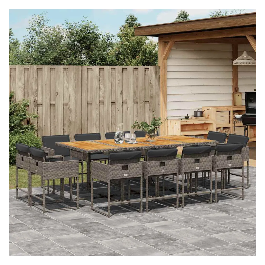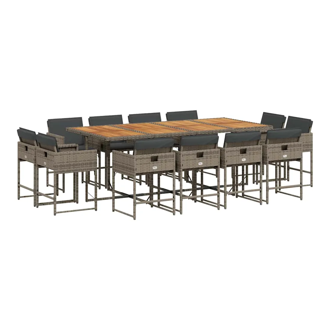 Ensemble à manger de jardin coussins 13 pcs gris résine tressée