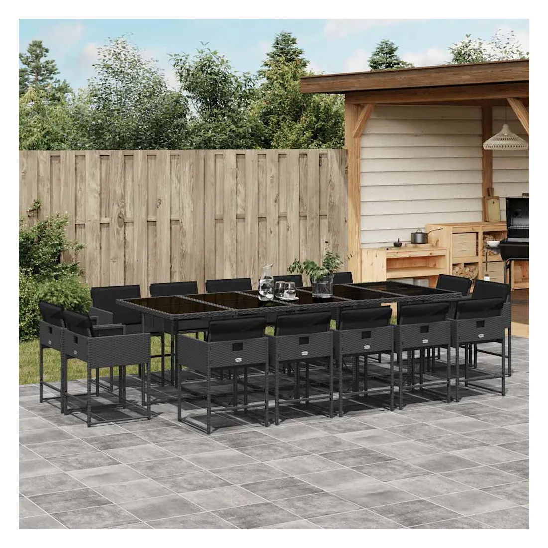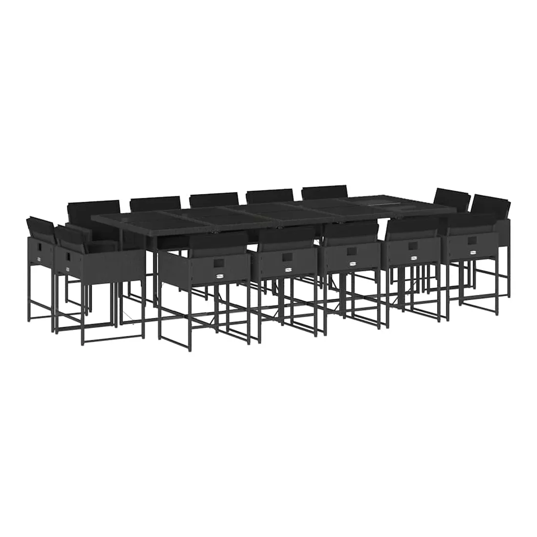 Ensemble à manger de jardin 15 pcs coussins noir résine tressée