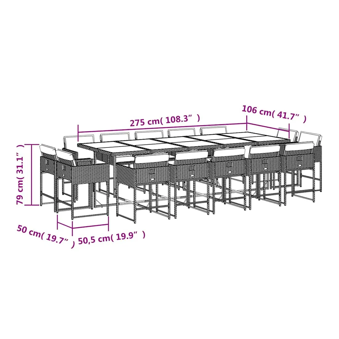 Ensemble à manger de jardin 15 pcs coussins gris résine tressée