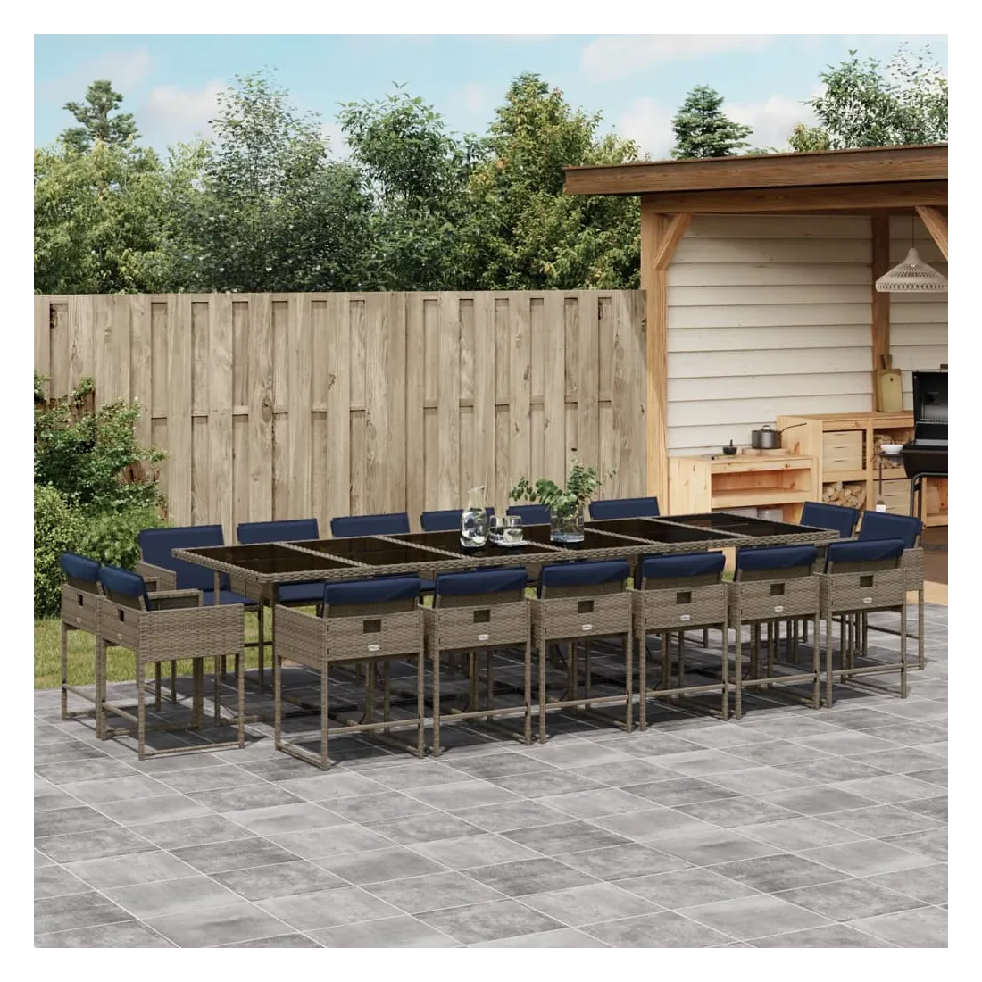Cet ensemble de salle à manger de jardin est un excellent choix pour les repas en plein air ou pour vous détendre dans le jardin, l'arrière-cour ou le patio. Matériau durable : la résine tressée, également connue sous le nom de poly rotin, est un matériau synthétique solide et nécessitant peu d'entretien qui ressemble au rotin naturel. Elle est légère, facile à nettoyer et couramment utilisée pour les meubles d'extérieur en raison de sa durabilité et de ses propriétés de résistance aux intempéries.Rangement compact : ces chaises sont dotées d'un dossier rabattable, ce qui permet de les ranger facilement sous la table. Une fois pliées, elles se rangent parfaitement sous la table, formant un cube peu encombrant.Expérience d'assise confortable : ce mobilier d'extérieur, doté de coussins épais, offre une expérience d'assise confortable.Housse amovible et lavable : ces coussins de siège sont dotés de housses amovibles pour un lavage et un entretien faciles. Les housses de coussin de chaise ont un rabat à l'arrière pour une fixation facile aux chaises.Dessus en verre : le dessus de la table de jardin est fabriqué en verre trempé solide et durable, ce qui le rend facile à nettoyer avec un chiffon humide et ajoute une touche d'élégance à votre espace extérieur. Bon à savoir :Pour que vos meubles d'extérieur restent beaux, nous vous recommandons de les protéger avec une housse imperméable.