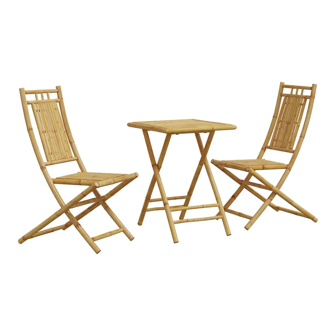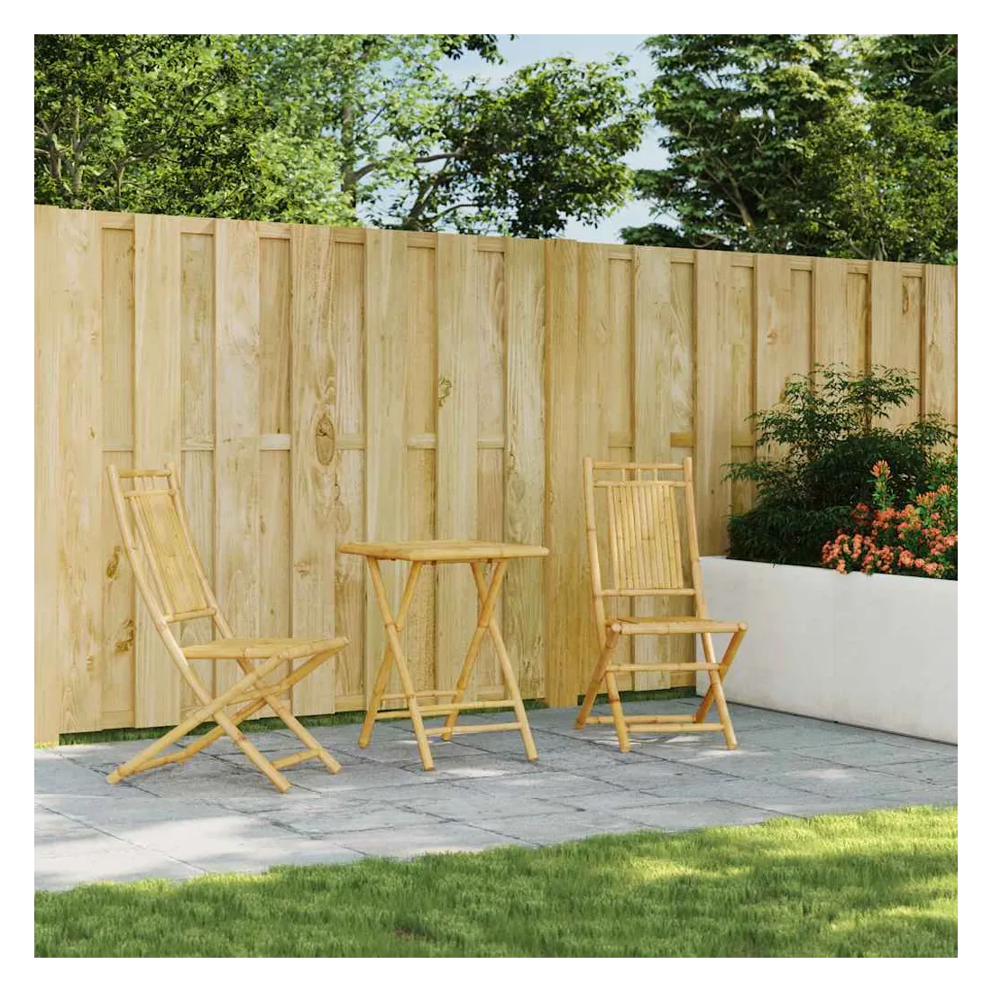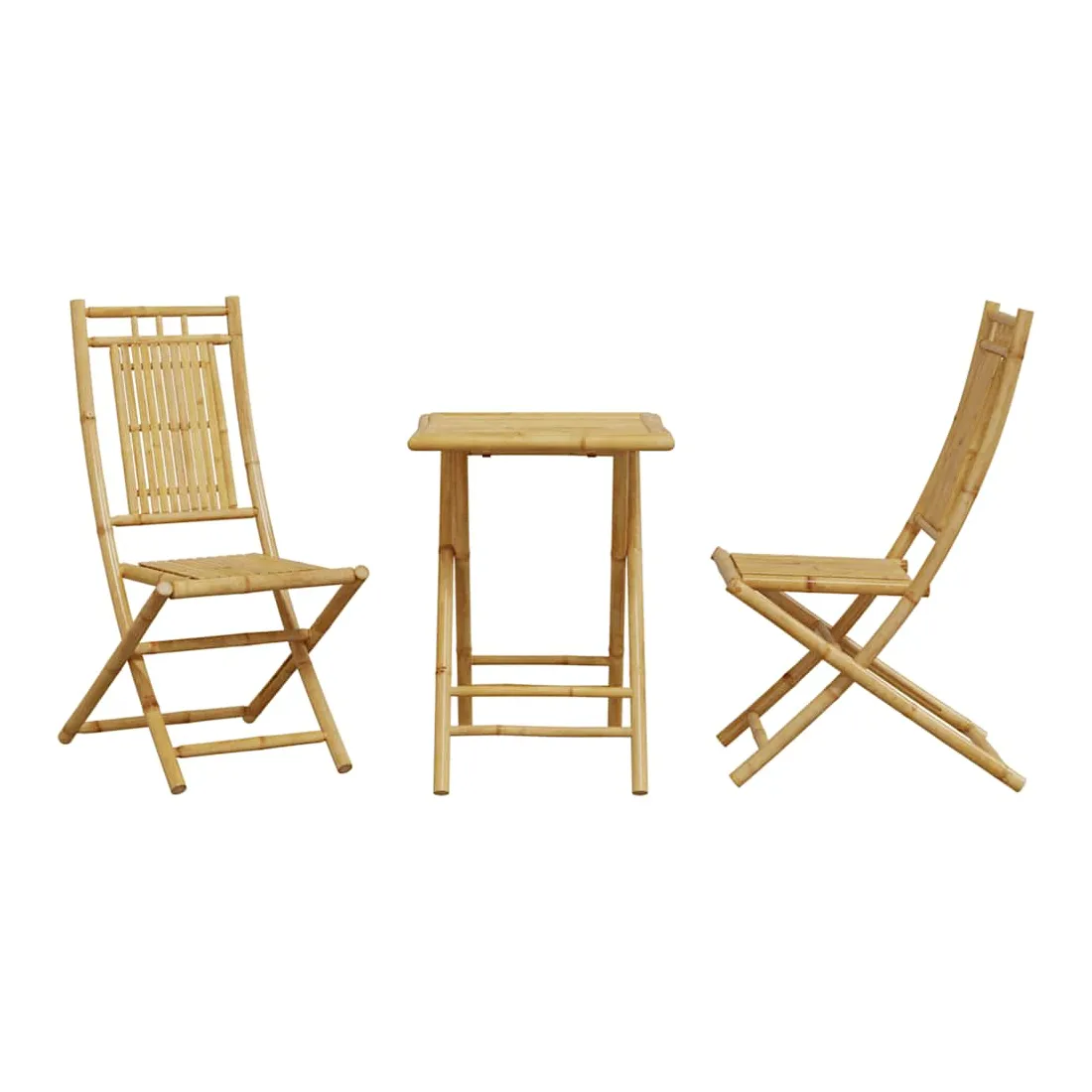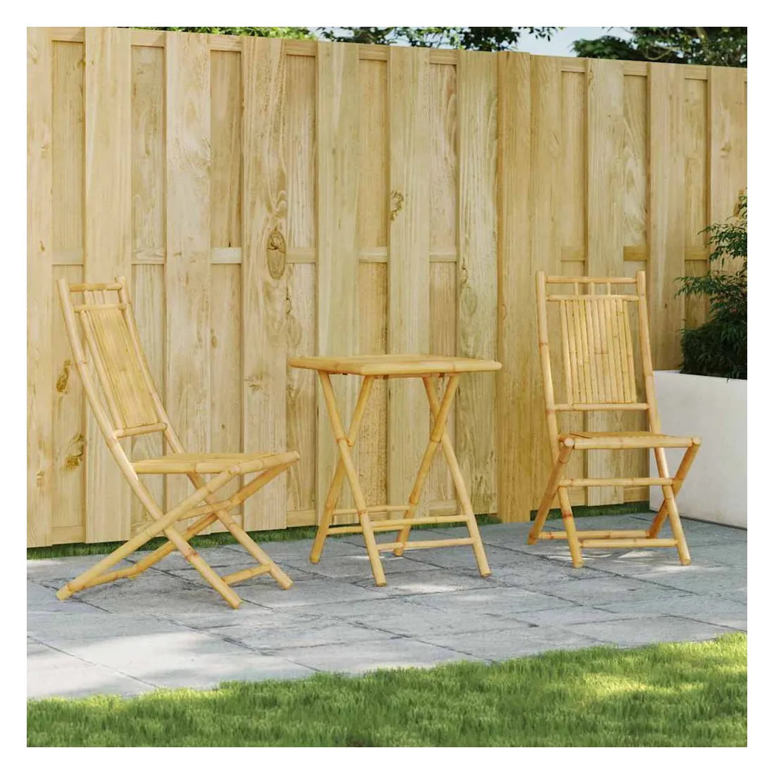 Savourez une tasse de café ou discutez avec votre famille et vos amis dans le jardin, l'arrière-cour ou sur le balcon avec cet ensemble de bistro ! Durable : en tant que matériau naturel, le bambou offre une bonne respirabilité et une faible odeur. Ces qualités rendent l’ensemble de bistro de jardin durable, résistant à l’eau et de longue durée.Design pliable : l'ensemble de bistro d'extérieur peut être facilement plié lorsqu'il n'est pas utilisé pour faciliter le rangement et le transport.Dessus stable : le dessus stable de la table de jardin est idéal pour placer votre boisson ou toute autre nécessité dont vous avez besoin à portée de main.Une expérience d'assise confortable : dotée d'un dossier, la chaise d'extérieur vous offre un confort optimal. Bon à savoir :Pour que vos meubles d'extérieur restent beaux, nous vous recommandons de les protéger avec une housse imperméable.