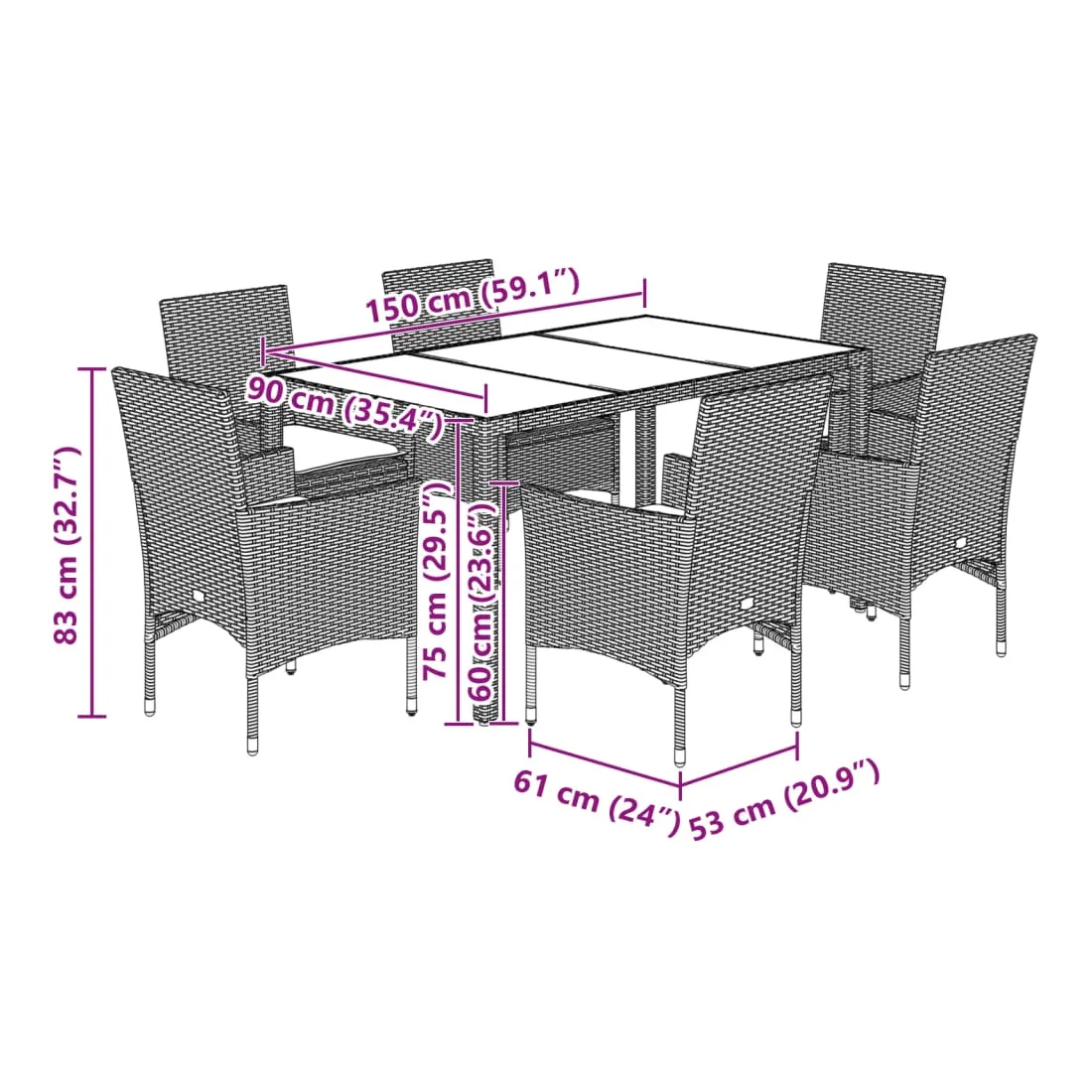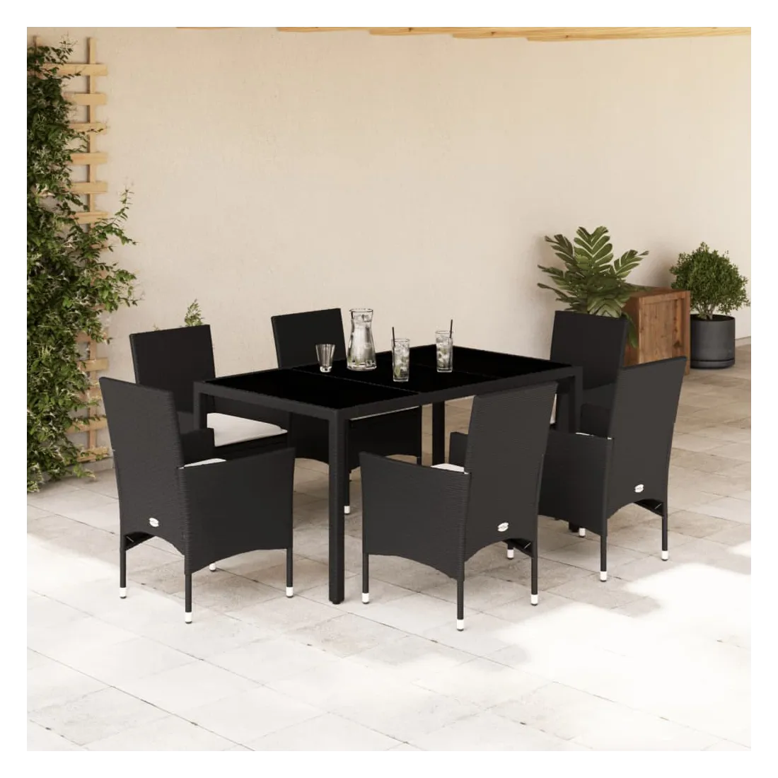 Cet ensemble de salle à manger de jardin est un excellent choix pour les repas en plein air ou pour vous détendre dans le jardin, dans l'arrière-cour ou sur la terrasse. Matériau durable : la résine tressée, également connue sous le nom de poly rotin, est un matériau synthétique solide et nécessitant peu d'entretien qui ressemble au rotin naturel. Il est léger, facile à nettoyer et couramment utilisé pour les meubles d'extérieur en raison de sa durabilité et de ses propriétés de résistance aux intempéries.Expérience d'assise confortable : cet ensemble de meubles d'extérieur, doté de coussins épais, offre une expérience d'assise confortable.Housse amovible et lavable : ces coussins de siège sont dotés de housses amovibles pour un lavage et un entretien faciles.Dessus en verre : le dessus de la table d'extérieur est fabriqué en verre trempé solide et durable, ce qui le rend facile à nettoyer avec un chiffon humide et ajoute une touche d'élégance à votre espace extérieur. Bon à savoir :Pour que vos meubles d'extérieur restent beaux, nous vous recommandons de les protéger avec une housse imperméable.