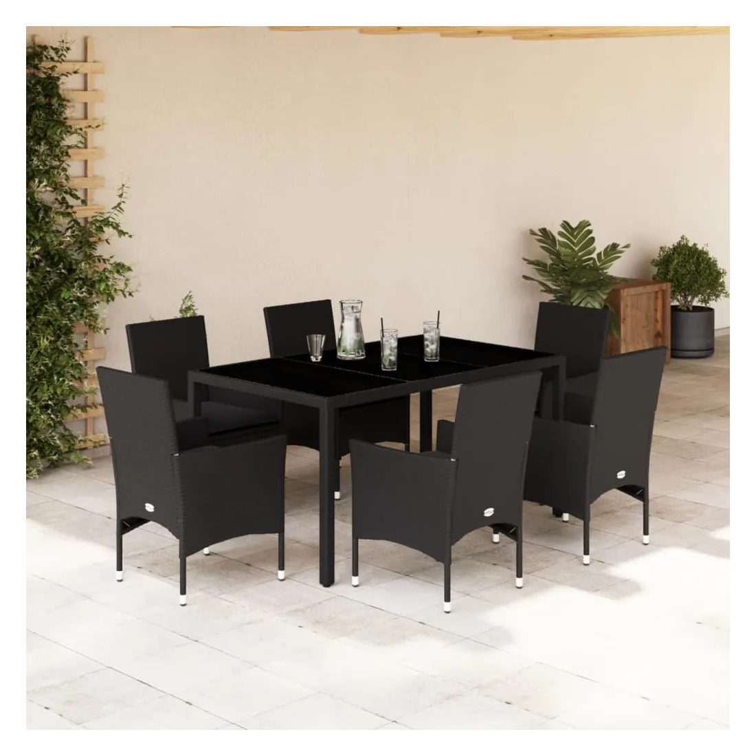 Cet ensemble de salle à manger de jardin est un excellent choix pour les repas en plein air ou pour vous détendre dans le jardin, dans l'arrière-cour ou sur la terrasse. Matériau durable : la résine tressée, également connue sous le nom de poly rotin, est un matériau synthétique solide et nécessitant peu d'entretien qui ressemble au rotin naturel. Il est léger, facile à nettoyer et couramment utilisé pour les meubles d'extérieur en raison de sa durabilité et de ses propriétés de résistance aux intempéries.Expérience d'assise confortable : cet ensemble de meubles d'extérieur, doté de coussins épais, offre une expérience d'assise confortable.Housse amovible et lavable : ces coussins de siège sont dotés de housses amovibles pour un lavage et un entretien faciles.Dessus en verre : le dessus de la table d'extérieur est fabriqué en verre trempé solide et durable, ce qui le rend facile à nettoyer avec un chiffon humide et ajoute une touche d'élégance à votre espace extérieur. Bon à savoir :Pour que vos meubles d'extérieur restent beaux, nous vous recommandons de les protéger avec une housse imperméable.