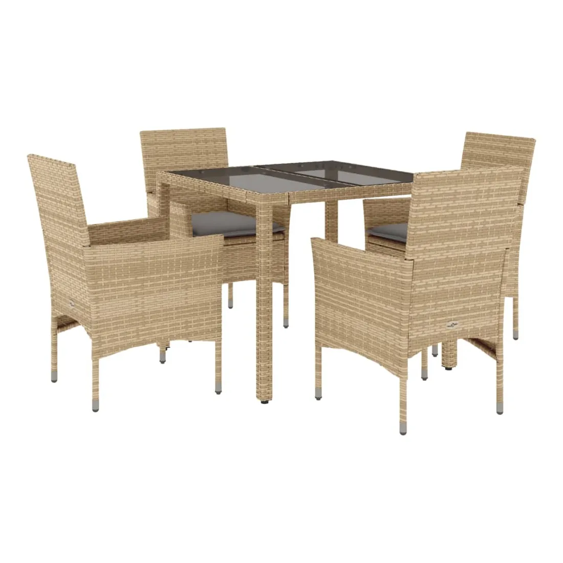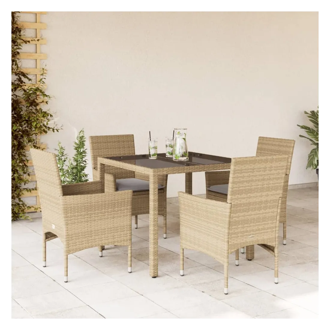Cet ensemble de salle à manger de jardin est un excellent choix pour les repas en plein air ou pour vous détendre dans le jardin, dans l'arrière-cour ou sur la terrasse. Matériau durable : la résine tressée, également connue sous le nom de poly rotin, est un matériau synthétique solide et nécessitant peu d'entretien qui ressemble au rotin naturel. Il est léger, facile à nettoyer et couramment utilisé pour les meubles d'extérieur en raison de sa durabilité et de ses propriétés de résistance aux intempéries.Expérience d'assise confortable : cet ensemble de meubles d'extérieur, doté de coussins épais, offre une expérience d'assise confortable.Housse amovible et lavable : ces coussins de siège sont dotés de housses amovibles pour un lavage et un entretien faciles.Dessus en verre : le dessus de la table d'extérieur est fabriqué en verre trempé solide et durable, ce qui le rend facile à nettoyer avec un chiffon humide et ajoute une touche d'élégance à votre espace extérieur. Bon à savoir :Pour que vos meubles d'extérieur restent beaux, nous vous recommandons de les protéger avec une housse imperméable.