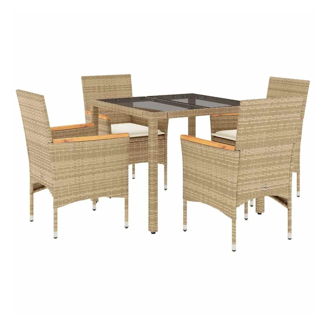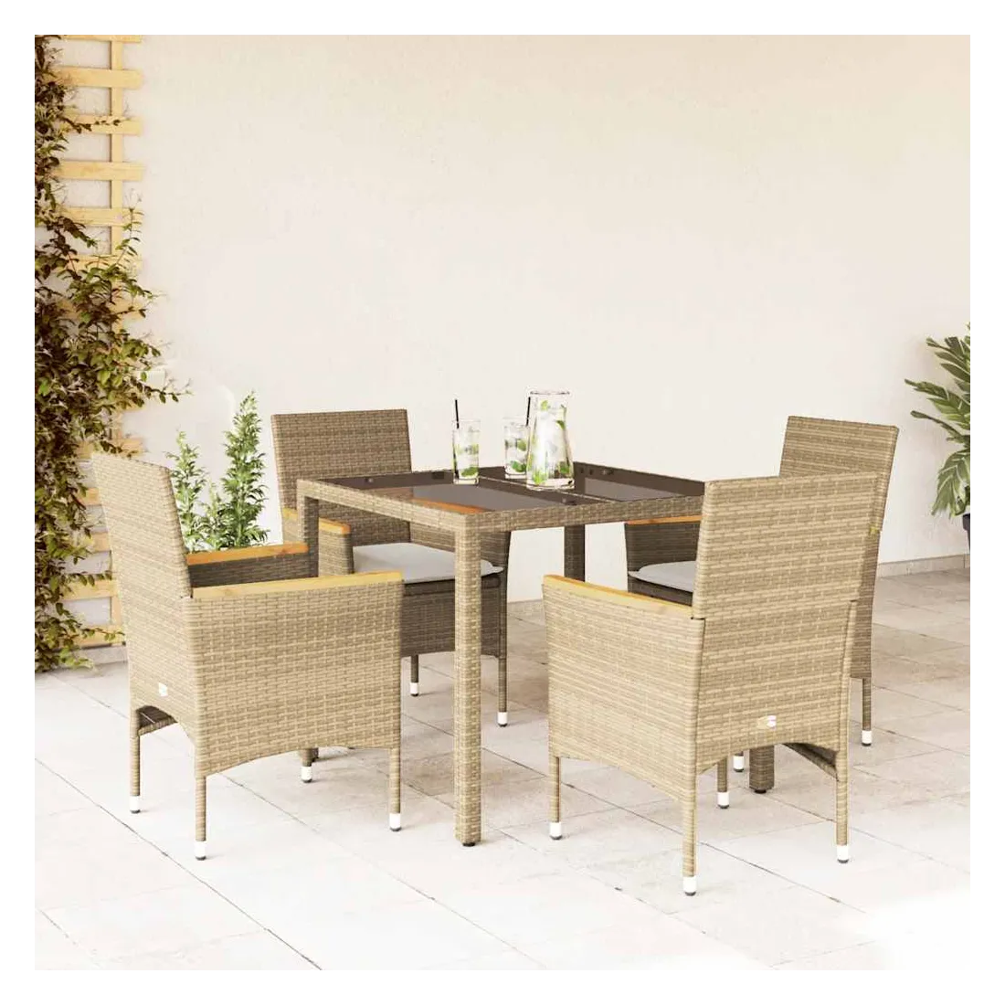 Cet ensemble de salle à manger de jardin est un excellent choix pour les repas en plein air ou pour vous détendre dans le jardin, dans l'arrière-cour ou sur la terrasse. Matériau durable : la résine tressée, également connue sous le nom de poly rotin, est un matériau synthétique solide et nécessitant peu d'entretien qui ressemble au rotin naturel. Il est léger, facile à nettoyer et couramment utilisé pour les meubles d'extérieur en raison de sa durabilité et de ses propriétés de résistance aux intempéries.Expérience d'assise confortable : cet ensemble de meubles d'extérieur, doté de coussins épais, offre une expérience d'assise confortable.Housse amovible et lavable : ces coussins de siège sont dotés de housses amovibles pour un lavage et un entretien faciles.Dessus en verre : le dessus de la table d'extérieur est fabriqué en verre trempé solide et durable, ce qui le rend facile à nettoyer avec un chiffon humide et ajoute une touche d'élégance à votre espace extérieur. Bon à savoir :Pour que vos meubles d'extérieur restent beaux, nous vous recommandons de les protéger avec une housse imperméable.