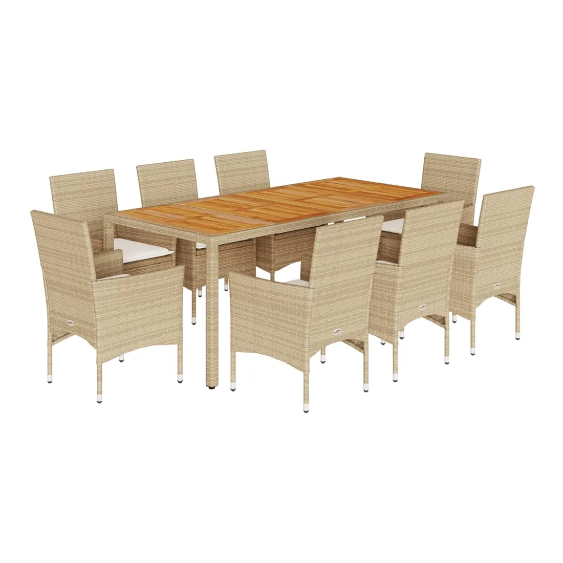 Ensemble à manger de jardin et coussins 9pcs beige rotin acacia