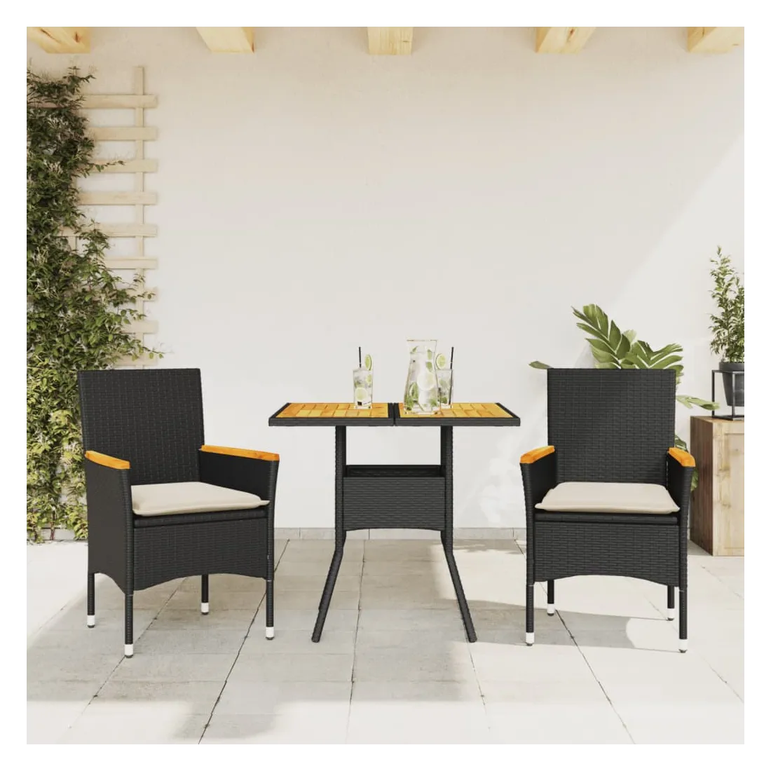 Cet ensemble de salle à manger de jardin est un excellent choix pour les repas en plein air ou pour vous détendre dans le jardin, dans l'arrière-cour ou sur la terrasse. Matériau durable : la résine tressée, également connue sous le nom de poly rotin, est un matériau synthétique solide et nécessitant peu d'entretien qui ressemble au rotin naturel. Il est léger, facile à nettoyer et couramment utilisé pour les meubles d'extérieur en raison de sa durabilité et de ses propriétés de résistance aux intempéries.Expérience d'assise confortable : cet ensemble de meubles d'extérieur, doté de coussins épais, offre une expérience d'assise confortable.Housse amovible et lavable : ces coussins de siège sont dotés de housses amovibles pour un lavage et un entretien faciles.Dessus stable et facile à nettoyer : cette table de jardin a un dessus en bois d'acacia robuste, durable et facile à nettoyer avec un chiffon humide. Bon à savoir :Pour que vos meubles d'extérieur restent beaux, nous vous recommandons de les protéger avec une housse imperméable.