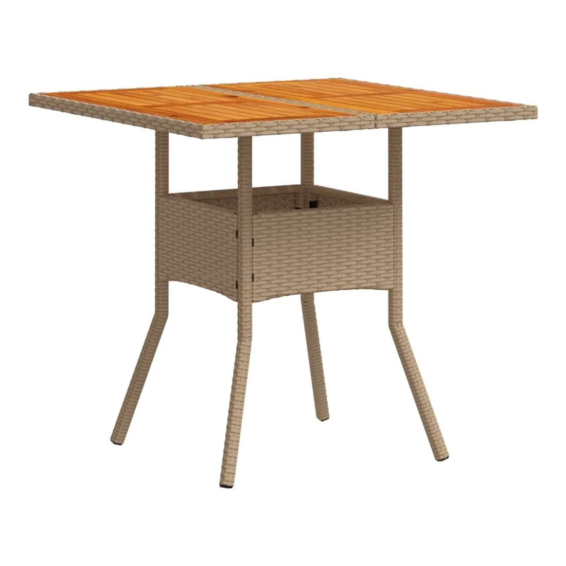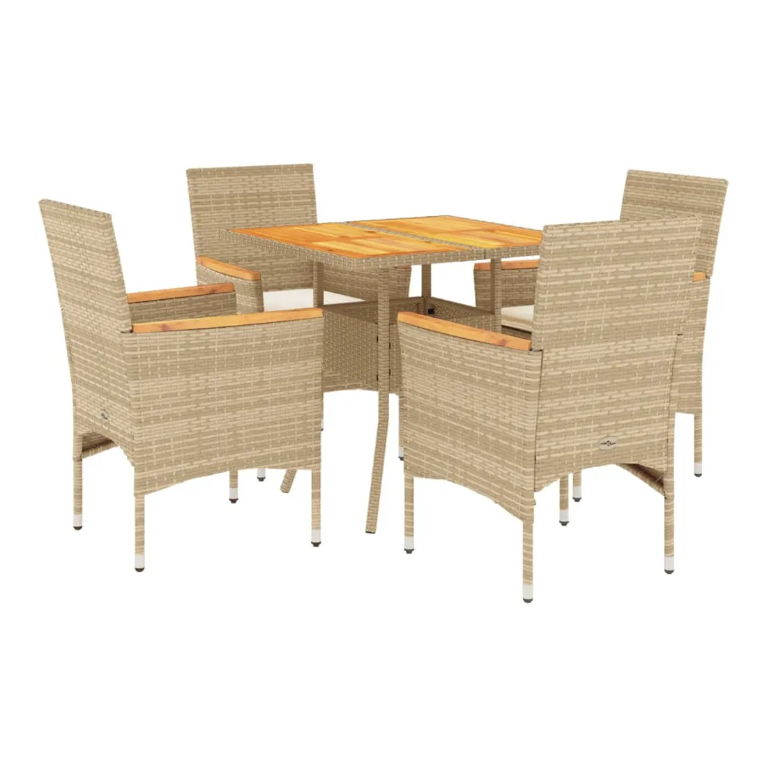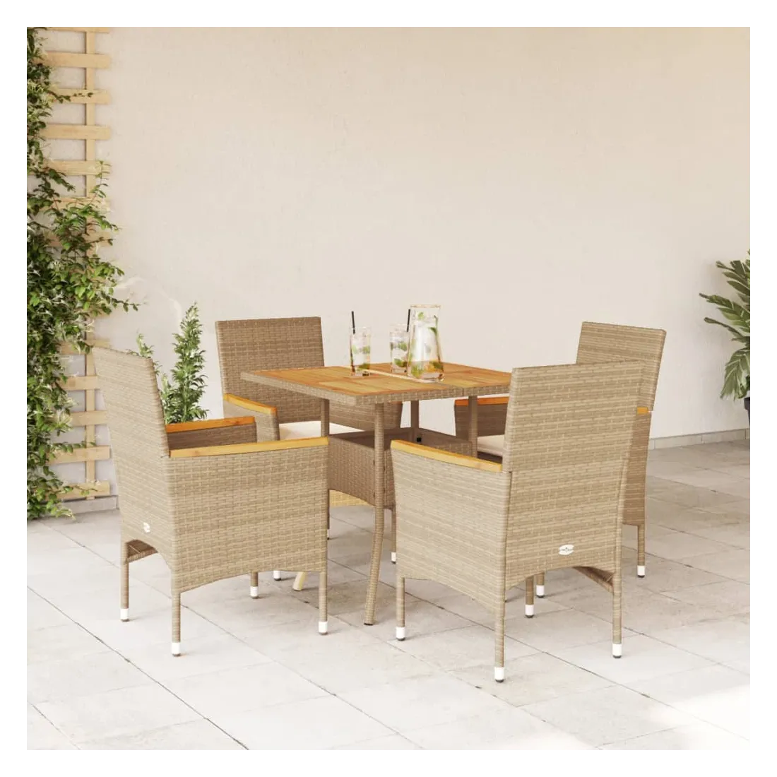 Cet ensemble de salle à manger de jardin est un excellent choix pour les repas en plein air ou pour vous détendre dans le jardin, dans l'arrière-cour ou sur la terrasse. Matériau durable : la résine tressée, également connue sous le nom de poly rotin, est un matériau synthétique solide et nécessitant peu d'entretien qui ressemble au rotin naturel. Il est léger, facile à nettoyer et couramment utilisé pour les meubles d'extérieur en raison de sa durabilité et de ses propriétés de résistance aux intempéries.Expérience d'assise confortable : cet ensemble de meubles d'extérieur, doté de coussins épais, offre une expérience d'assise confortable.Housse amovible et lavable : ces coussins de siège sont dotés de housses amovibles pour un lavage et un entretien faciles.Dessus stable et facile à nettoyer : cette table de jardin a un dessus en bois d'acacia robuste, durable et facile à nettoyer avec un chiffon humide. Bon à savoir :Pour que vos meubles d'extérieur restent beaux, nous vous recommandons de les protéger avec une housse imperméable.