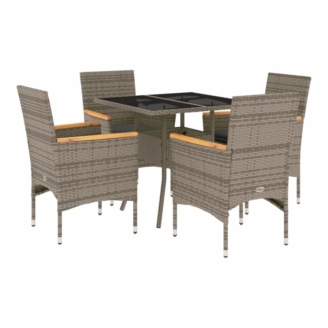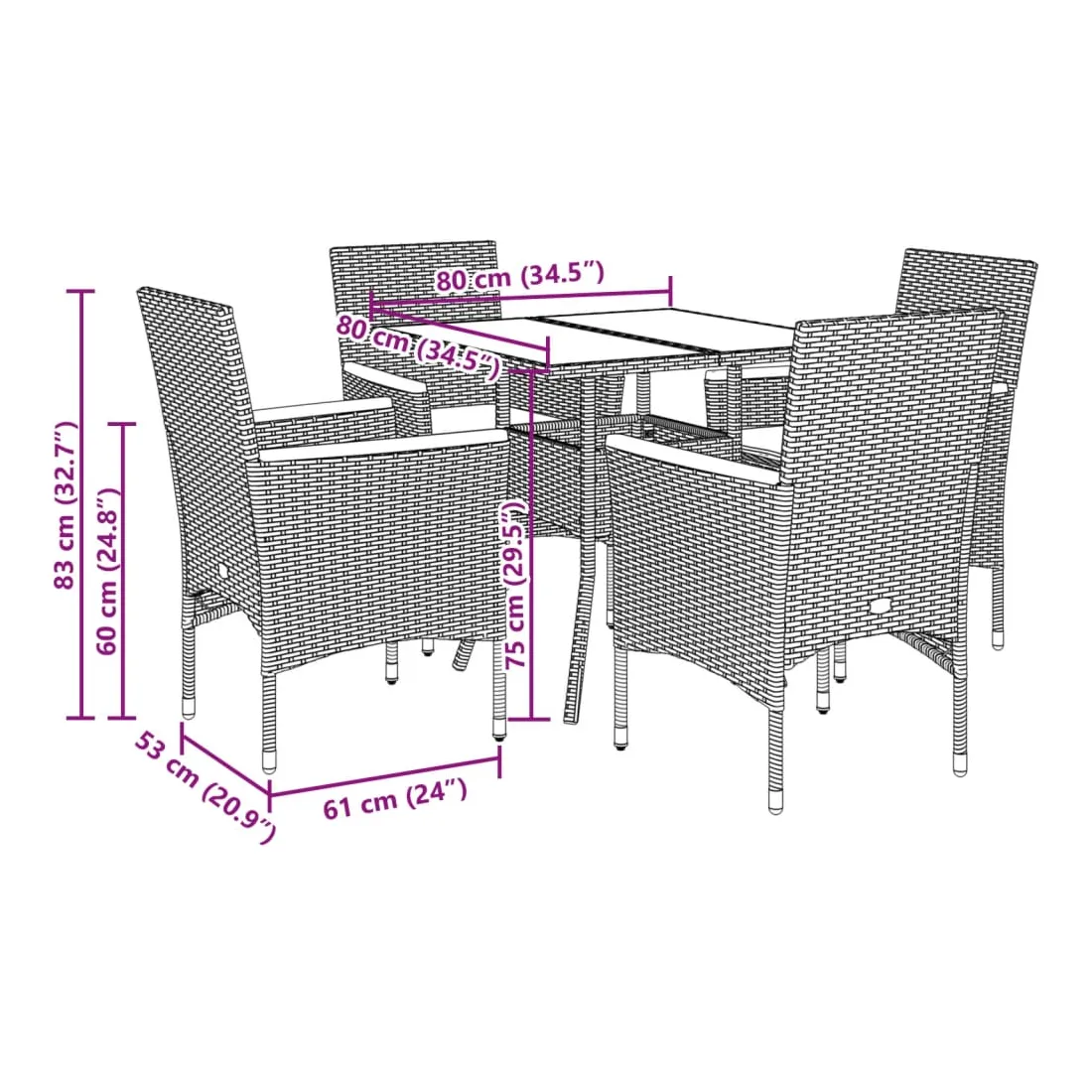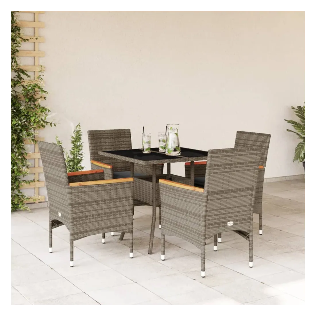 Cet ensemble de salle à manger de jardin est un excellent choix pour les repas en plein air ou pour vous détendre dans le jardin, dans l'arrière-cour ou sur la terrasse. Matériau durable : la résine tressée, également connue sous le nom de poly rotin, est un matériau synthétique solide et nécessitant peu d'entretien qui ressemble au rotin naturel. Il est léger, facile à nettoyer et couramment utilisé pour les meubles d'extérieur en raison de sa durabilité et de ses propriétés de résistance aux intempéries.Expérience d'assise confortable : cet ensemble de meubles d'extérieur, doté de coussins épais, offre une expérience d'assise confortable.Housse amovible et lavable : ces coussins de siège sont dotés de housses amovibles pour un lavage et un entretien faciles.Dessus en verre : le dessus de la table d'extérieur est fabriqué en verre trempé solide et durable, ce qui le rend facile à nettoyer avec un chiffon humide et ajoute une touche d'élégance à votre espace extérieur. Bon à savoir :Pour que vos meubles d'extérieur restent beaux, nous vous recommandons de les protéger avec une housse imperméable.