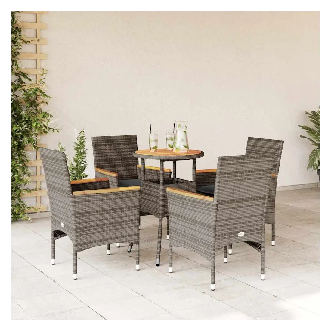 Cet ensemble de salle à manger de jardin est un excellent choix pour les repas en plein air ou pour vous détendre dans le jardin, dans l'arrière-cour ou sur la terrasse. Matériau durable : la résine tressée, également connue sous le nom de poly rotin, est un matériau synthétique solide et nécessitant peu d'entretien qui ressemble au rotin naturel. Il est léger, facile à nettoyer et couramment utilisé pour les meubles d'extérieur en raison de sa durabilité et de ses propriétés de résistance aux intempéries.Expérience d'assise confortable : cet ensemble de meubles d'extérieur, doté de coussins épais, offre une expérience d'assise confortable.Housse amovible et lavable : ces coussins de siège sont dotés de housses amovibles pour un lavage et un entretien faciles.Dessus stable et facile à nettoyer : cette table de jardin a un dessus en bois d'acacia robuste, durable et facile à nettoyer avec un chiffon humide. Bon à savoir :Pour que vos meubles d'extérieur restent beaux, nous vous recommandons de les protéger avec une housse imperméable.