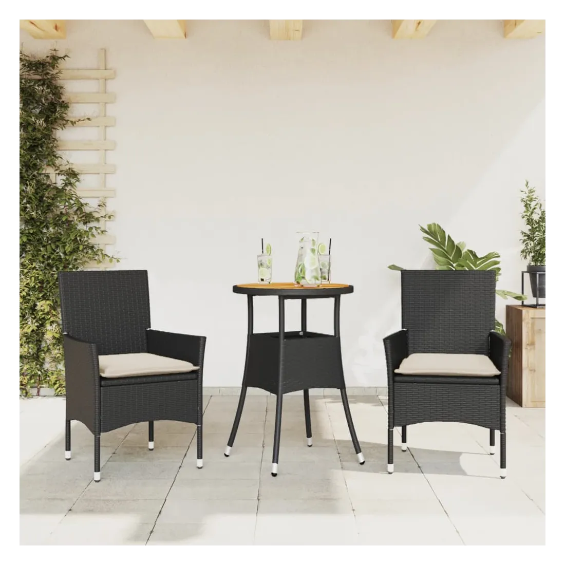 - Matériau : résine tressée, acier enduit de poudre, bois d'acacia massif avec finition à l'huile