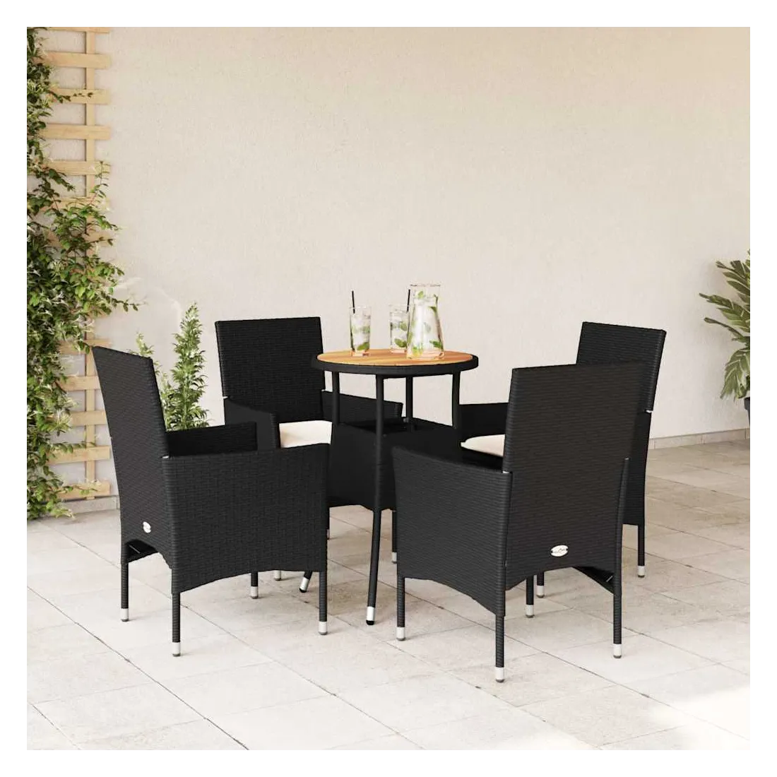 Cet ensemble de salle à manger de jardin est un excellent choix pour les repas en plein air ou pour vous détendre dans le jardin, dans l'arrière-cour ou sur la terrasse. Matériau durable : la résine tressée, également connue sous le nom de poly rotin, est un matériau synthétique solide et nécessitant peu d'entretien qui ressemble au rotin naturel. Il est léger, facile à nettoyer et couramment utilisé pour les meubles d'extérieur en raison de sa durabilité et de ses propriétés de résistance aux intempéries.Expérience d'assise confortable : cet ensemble de meubles d'extérieur, doté de coussins épais, offre une expérience d'assise confortable.Housse amovible et lavable : ces coussins de siège sont dotés de housses amovibles pour un lavage et un entretien faciles.Dessus stable et facile à nettoyer : cette table de jardin a un dessus en bois d'acacia robuste, durable et facile à nettoyer avec un chiffon humide. Bon à savoir :Pour que vos meubles d'extérieur restent beaux, nous vous recommandons de les protéger avec une housse imperméable.