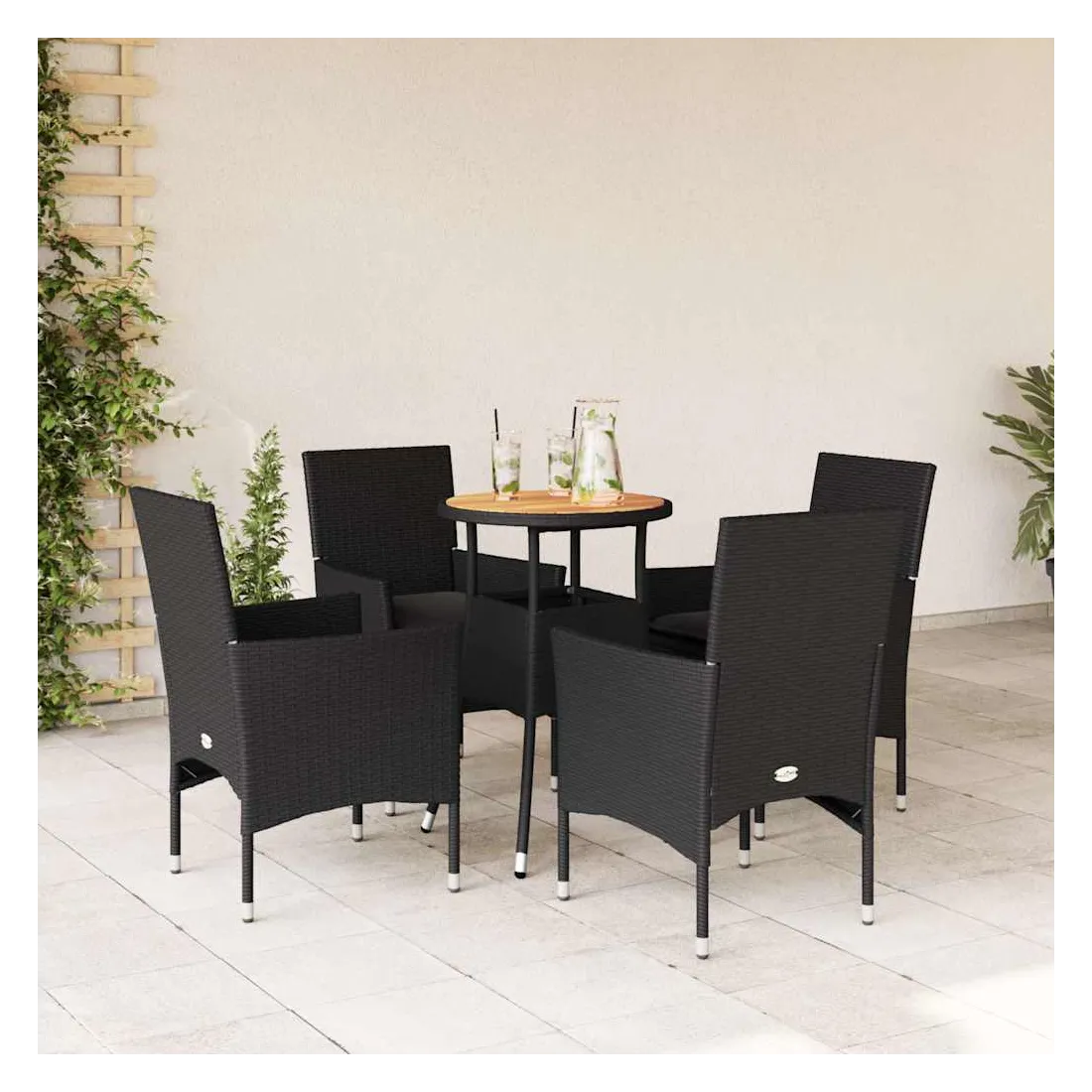 Cet ensemble de salle à manger de jardin est un excellent choix pour les repas en plein air ou pour vous détendre dans le jardin, dans l'arrière-cour ou sur la terrasse. Matériau durable : la résine tressée, également connue sous le nom de poly rotin, est un matériau synthétique solide et nécessitant peu d'entretien qui ressemble au rotin naturel. Il est léger, facile à nettoyer et couramment utilisé pour les meubles d'extérieur en raison de sa durabilité et de ses propriétés de résistance aux intempéries.Expérience d'assise confortable : cet ensemble de meubles d'extérieur, doté de coussins épais, offre une expérience d'assise confortable.Housse amovible et lavable : ces coussins de siège sont dotés de housses amovibles pour un lavage et un entretien faciles.Dessus stable et facile à nettoyer : cette table de jardin a un dessus en bois d'acacia robuste, durable et facile à nettoyer avec un chiffon humide. Bon à savoir :Pour que vos meubles d'extérieur restent beaux, nous vous recommandons de les protéger avec une housse imperméable.