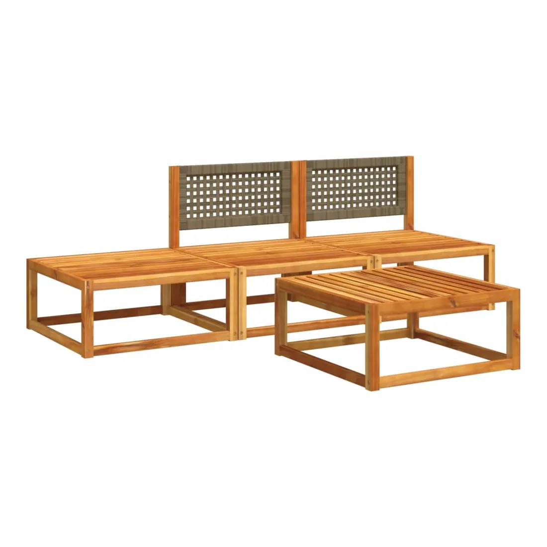 vidaXLCet ensemble de canapé de jardin avec dossiers en rotin tressé est le complément parfait à votre jardin, terrasse ou patio, offrant un espace confortable et accueillant pour discuter en famille et entre amis ou simplement se détendre et profiter du plein air. Dossier tressé élégant : Le canapé de jardin est doté de dossiers en rotin finement travaillés, ajoutant une touche sophistiquée à tout espace extérieur.Cadre robuste et stable : Le bois d'acacia massif est connu pour sa résistance et sa durabilité. Ses couleurs variées et ses motifs de grain uniques lui confèrent une apparence attrayante. Avec une bonne stabilité et une bonne résistance aux intempéries, il est idéal pour la fabrication de meubles d'intérieur et d'extérieur. Expérience d'assise confortable : Ce mobilier d'extérieur, doté de coussins épais et rembourrés, offre une expérience d'assise confortable.Bien ventilé et anti-accumulation : La conception à lattes favorise une circulation d'air optimale et empêche efficacement l'accumulation d'eau, garantissant un mobilier de jardin sec et confortable.Housse amovible et lavable : Ces coussins d'assise sont dotés de housses amovibles pour un lavage et un entretien faciles.Conception modulaire : Ce mobilier d'extérieur a une conception modulaire, ce qui le rend entièrement flexible et facile à déplacer, vous permettant ainsi de créer un aménagement de mobilier d'extérieur personnalisé. Bon à savoir :Pour que votre mobilier d'extérieur reste beau, nous vous recommandons de le protéger avec une housse imperméable.