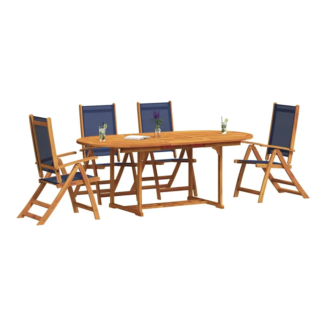 - Matériau : bois d'acacia massif avec finition à l'huile, textilène