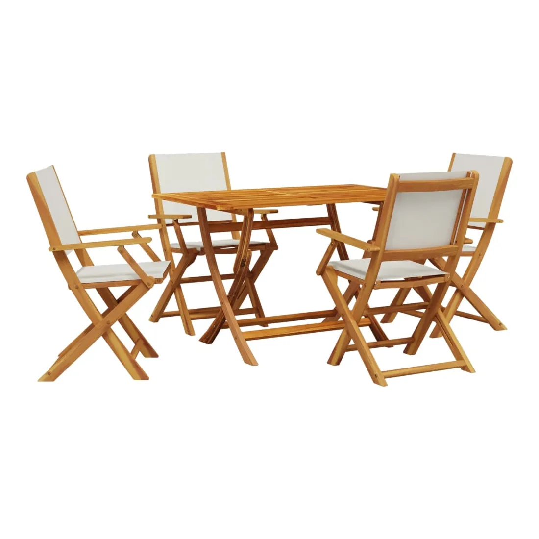 Cet ensemble de salle à manger de jardin est un excellent choix pour les repas en plein air ou pour vous détendre dans le jardin, dans l'arrière-cour ou sur la terrasse. Robuste et stable : le bois d'acacia massif est connu pour sa solidité et sa durabilité. Ses couleurs variées et ses grains uniques lui confèrent un aspect attrayant. Sa stabilité et sa résistance aux intempéries en font un matériau idéal pour la fabrication de meubles d'intérieur et d'extérieur.Conception pratique : la main courante en bois, pratique et plate, vous permet de poser vos mains dessus tout en profitant d'un moment en plein air.Dessus de table robuste : la table d'extérieur offre un excellent support pour accueillir vos boissons, collations, corbeilles de fruits et vos décorations préférées.Design pliable : la table et les chaises de salle à manger d'extérieur peuvent être facilement repliées lorsqu'elles ne sont pas utilisées pour faciliter le rangement et le transport. Bon à savoir :Pour que vos meubles d'extérieur restent beaux, nous vous recommandons de les protéger avec une housse imperméable.