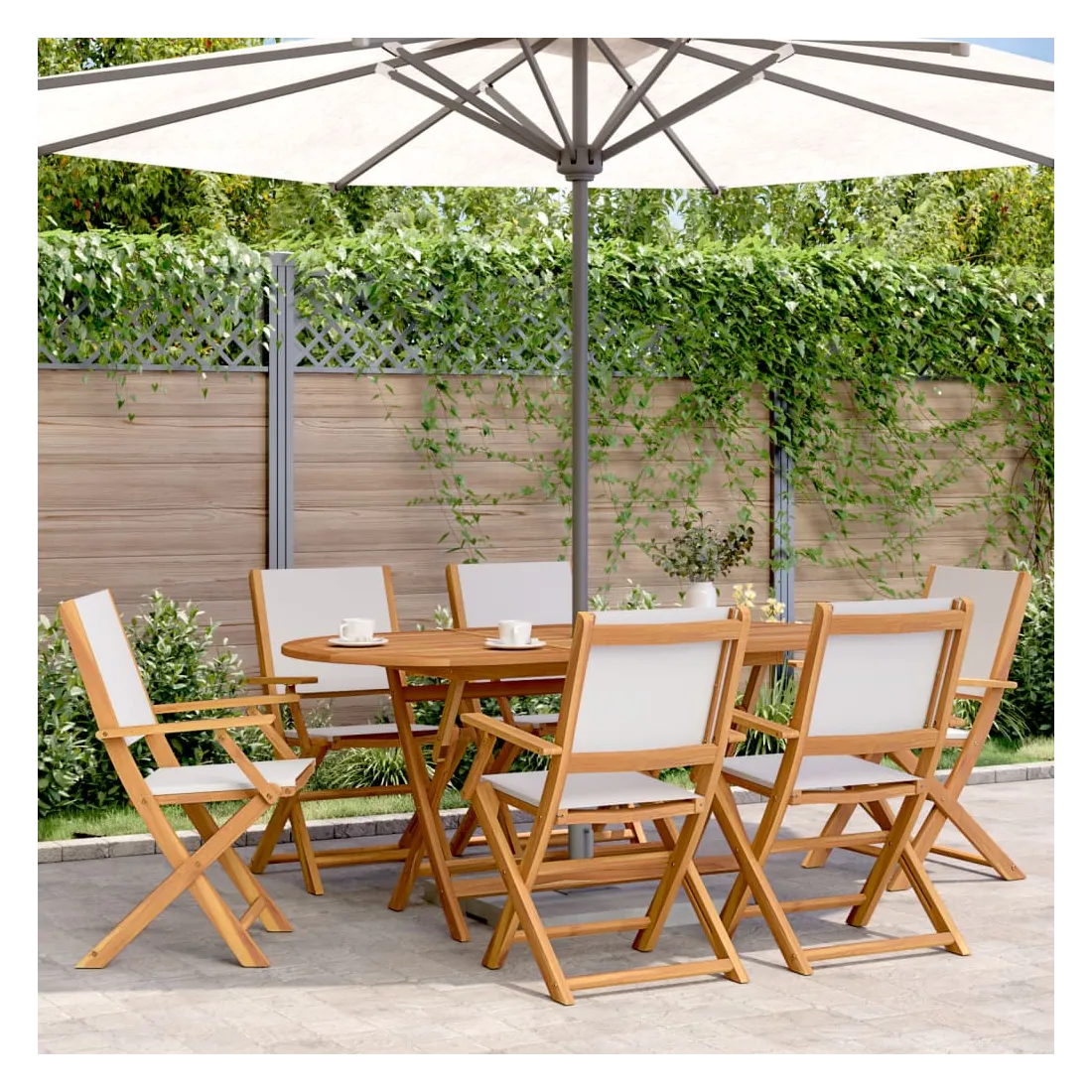 Cet ensemble de salle à manger de jardin est un excellent choix pour les repas en plein air ou pour vous détendre dans le jardin, dans l'arrière-cour ou sur la terrasse. Robuste et stable : le bois d'acacia massif est connu pour sa solidité et sa durabilité. Ses couleurs variées et ses grains uniques lui confèrent un aspect attrayant. Sa stabilité et sa résistance aux intempéries en font un matériau idéal pour la fabrication de meubles d'intérieur et d'extérieur.Conception pratique : la main courante en bois, pratique et plate, vous permet de poser vos mains dessus tout en profitant d'un moment en plein air.Dessus de table robuste : la table d'extérieur offre un excellent support pour accueillir vos boissons, collations, corbeilles de fruits et vos décorations préférées.Design pliable : la table et les chaises de salle à manger d'extérieur peuvent être facilement repliées lorsqu'elles ne sont pas utilisées pour faciliter le rangement et le transport. Bon à savoir :Pour que vos meubles d'extérieur restent beaux, nous vous recommandons de les protéger avec une housse imperméable.