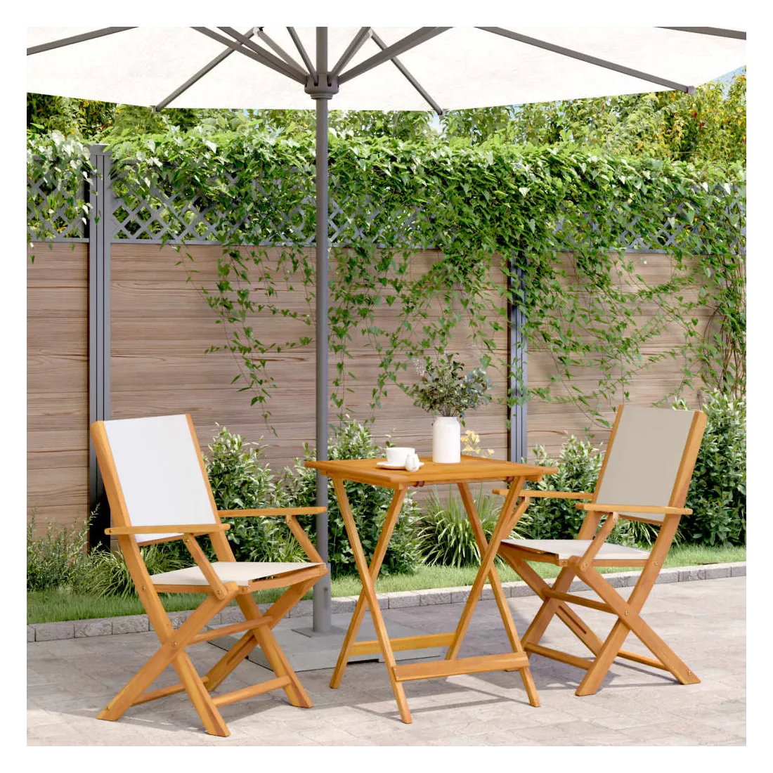 Savourez une tasse de café ou discutez avec votre famille et vos amis dans le jardin, l'arrière-cour ou sur le balcon avec cet ensemble de bistro ! Robuste et stable : le bois d'acacia massif est connu pour sa solidité et sa durabilité. Ses couleurs variées et ses grains uniques lui confèrent un aspect attrayant. Sa stabilité et sa résistance aux intempéries en font un matériau idéal pour la fabrication de meubles d'intérieur et d'extérieur.Conception pratique : la main courante en bois, pratique et plate, vous permet de poser vos mains dessus tout en profitant d'un moment en plein air.Dessus de table robuste : la table d'extérieur offre un excellent support pour accueillir vos boissons, collations, corbeilles de fruits et vos décorations préférées.Design pliable : la table et les chaises de salle à manger d'extérieur peuvent être facilement repliées lorsqu'elles ne sont pas utilisées pour faciliter le rangement et le transport. Bon à savoir :Pour que vos meubles d'extérieur restent beaux, nous vous recommandons de les protéger avec une housse imperméable.