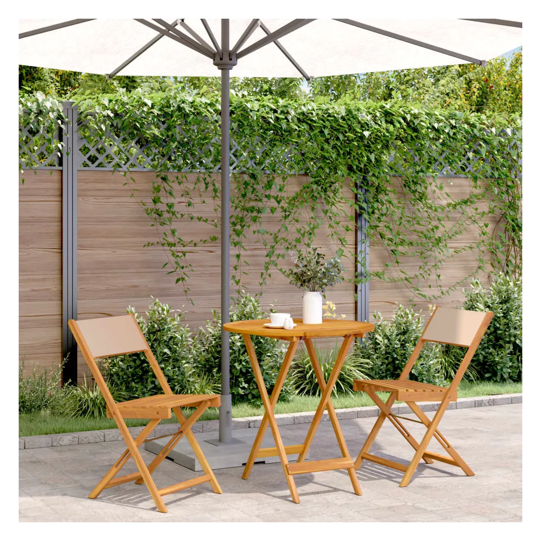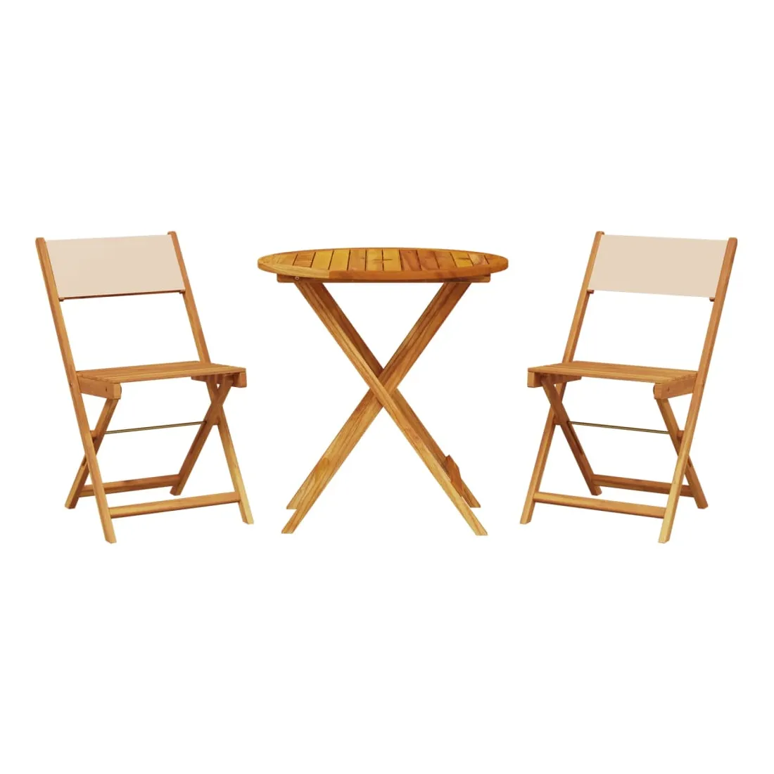 Savourez une tasse de café ou discutez avec votre famille et vos amis dans le jardin, l'arrière-cour ou sur le balcon avec cet ensemble de bistro ! Robuste et stable : le bois d'acacia massif est connu pour sa solidité et sa durabilité. Ses couleurs variées et ses grains uniques lui confèrent un aspect attrayant. Sa stabilité et sa résistance aux intempéries en font un matériau idéal pour la fabrication de meubles d'intérieur et d'extérieur.Conception pratique : la chaise d'extérieur ne comporte pas d'accoudoir, mais uniquement un dossier, ce qui vous permet d'être plus libre de vos mouvements tout en bénéficiant d'un grand confort.Dessus de table robuste : la table d'extérieur offre un excellent support pour accueillir vos boissons, collations, corbeilles de fruits et vos décorations préférées.Design pliable : la table et les chaises de salle à manger d'extérieur peuvent être facilement repliées lorsqu'elles ne sont pas utilisées pour faciliter le rangement et le transport. Bon à savoir :Pour que vos meubles d'extérieur restent beaux, nous vous recommandons de les protéger avec une housse imperméable.