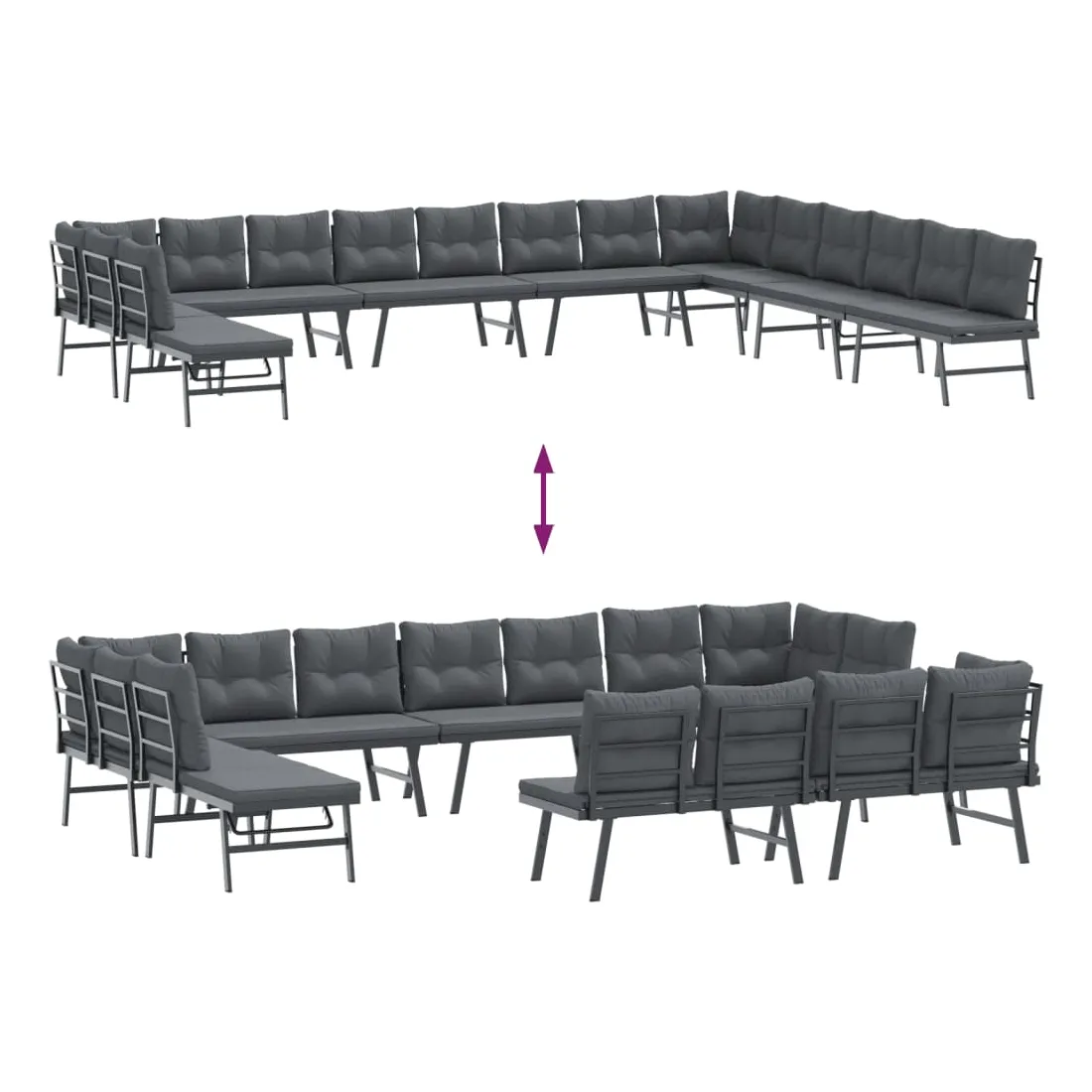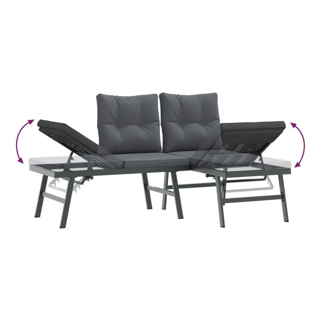 Ces bancs de jardin sont parfaits pour une utilisation à l'extérieur et ils sont conçus pour être le point central de votre jardin, terrasse ou patio, etc. Cadre robuste et stable : le cadre en acier enduit de poudre est solide, stable, durable et résistant à la corrosion et aux intempéries, ce qui garantit des performances durables.Siège latéral réglable : le petit panneau latéral de chaque canapé peut être relevé, transformant le canapé en une confortable chaise longue pour la relaxation. L'assise réglable peut être réglée sur trois niveaux différents pour répondre à vos besoins de lecture, de bain de soleil ou de sieste.Design confortable : les dossiers légèrement incurvés ajoutent un confort d'assise supplémentaire au banc.Expérience d'assise confortable : ce mobilier d'extérieur, doté d'un coussin épais rembourré, offre une expérience d'assise confortable.Housse amovible et lavable : ces coussins de siège sont dotés de housses amovibles pour un lavage et un entretien faciles. Bon à savoir :Pour que vos meubles d'extérieur restent beaux, nous vous recommandons de les protéger avec une housse imperméable.