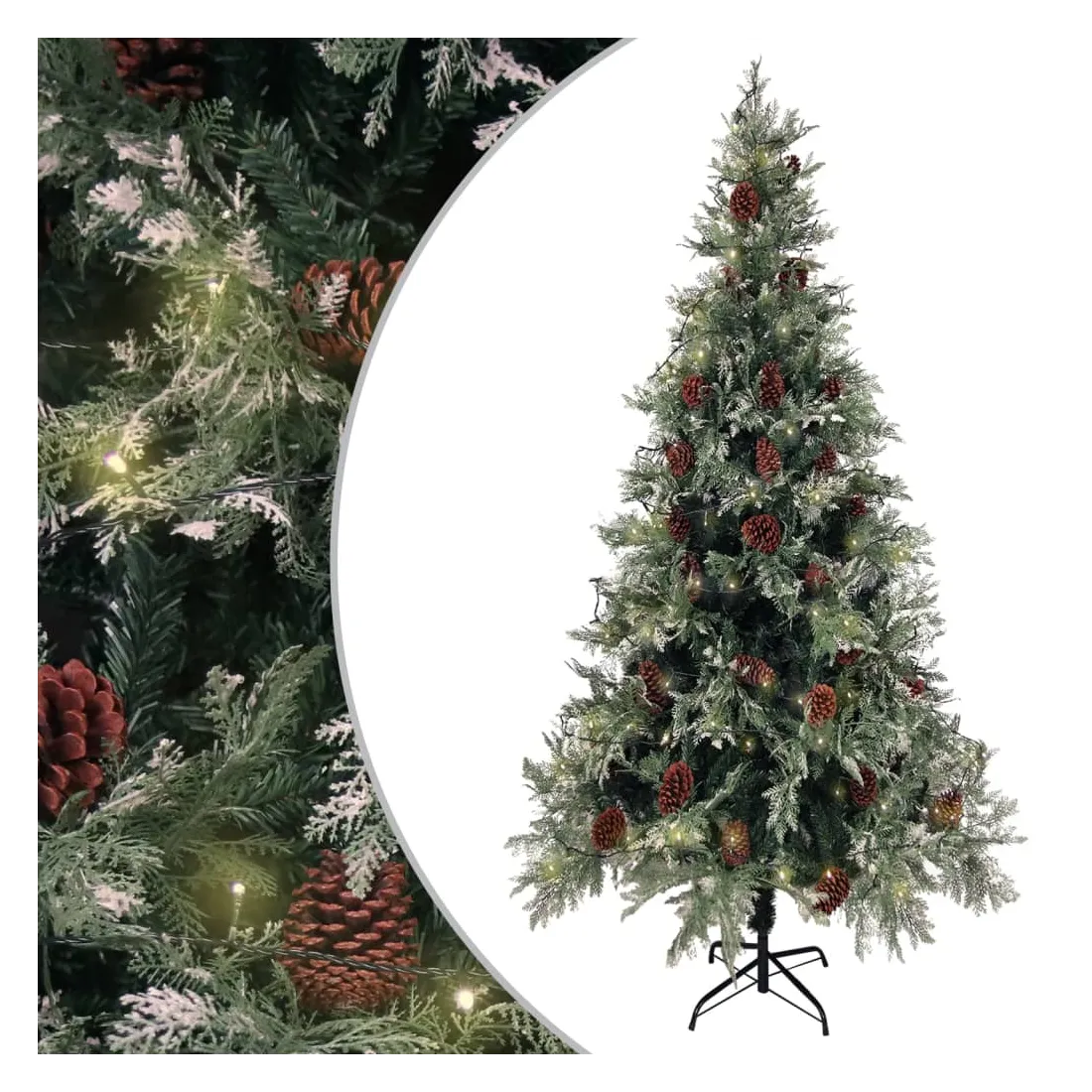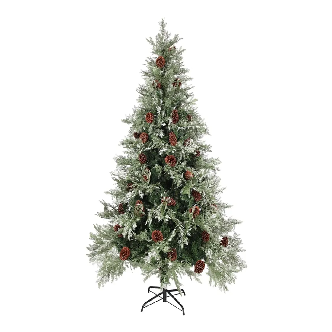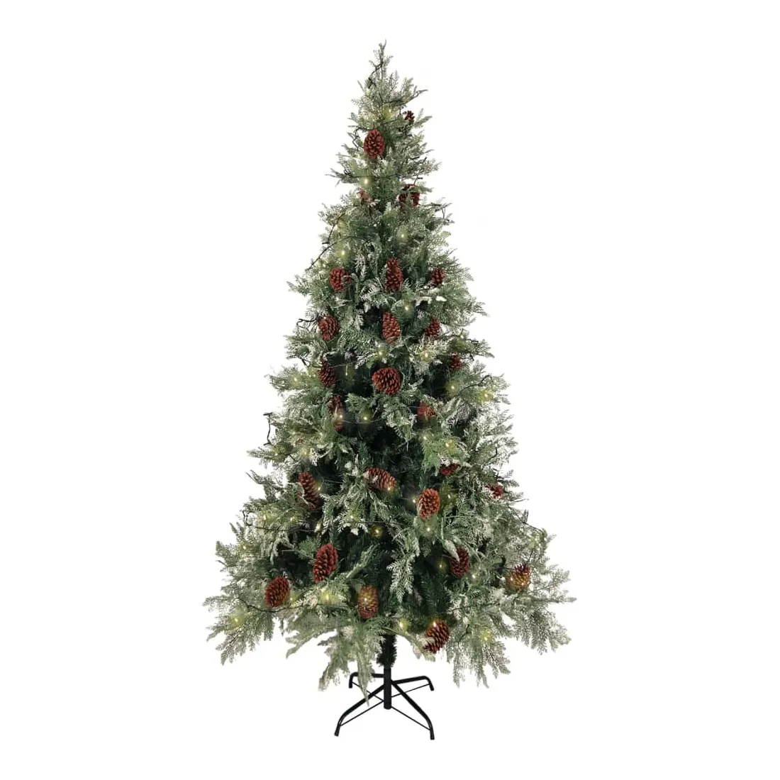 Sapin de Noël pré-éclairé pommes de pin vert blanc 225cm PVC PE