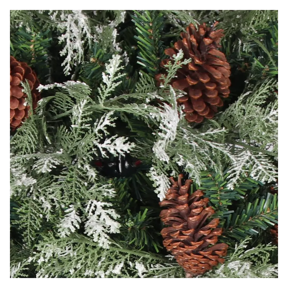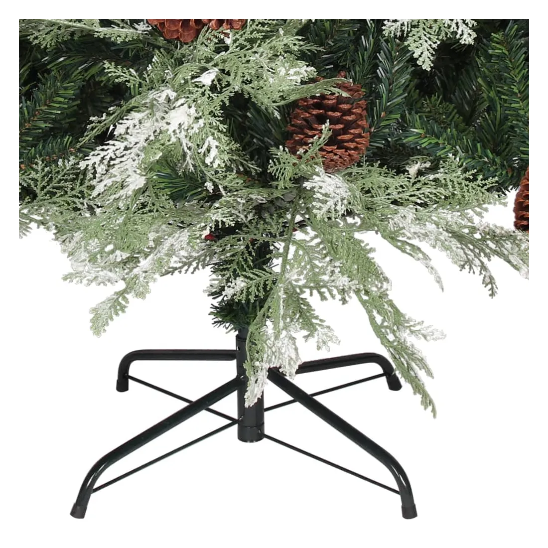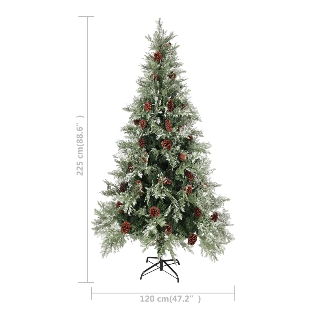 Sapin de Noël pré-éclairé pommes de pin vert blanc 225cm PVC PE