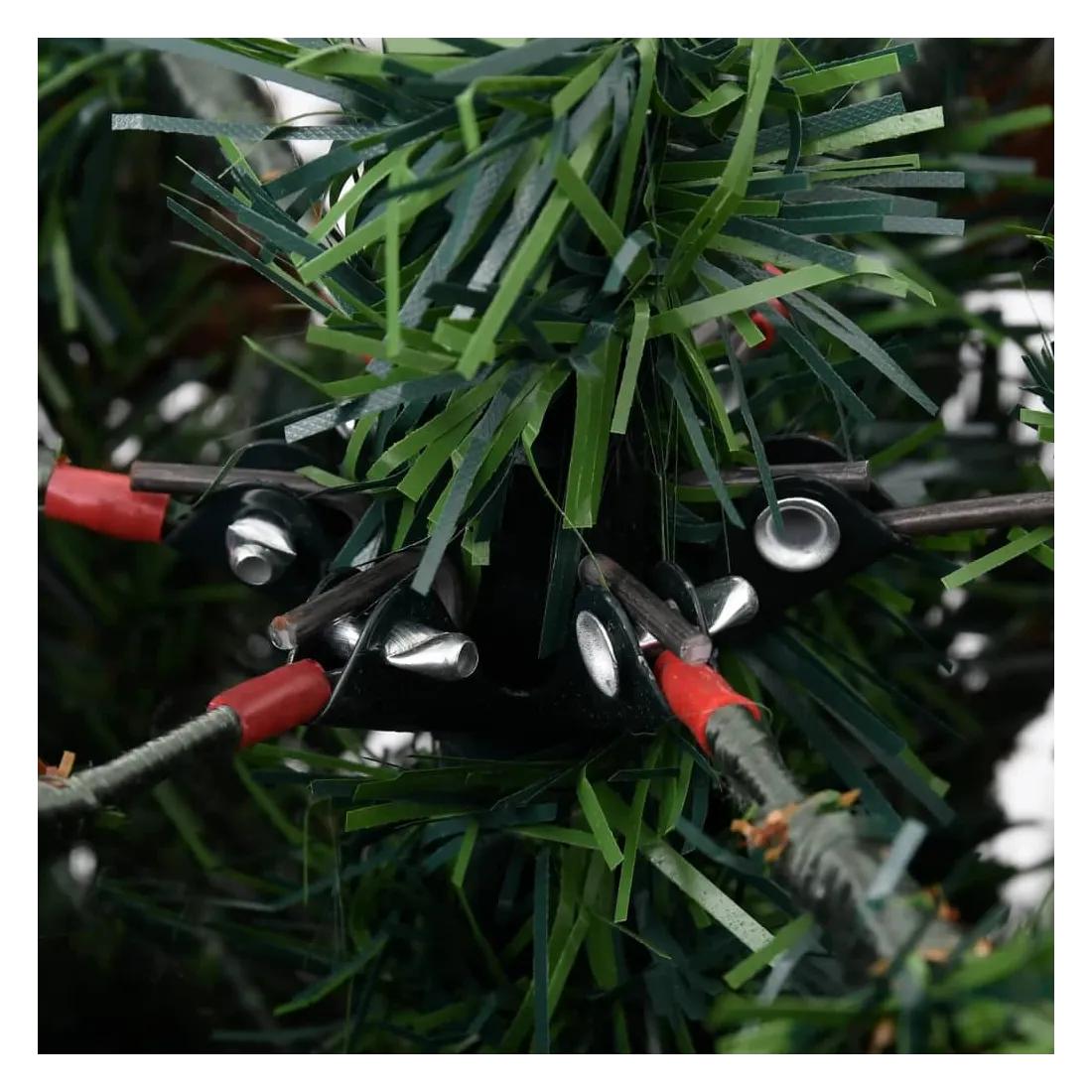 vidaXLCe sapin de Noël pré-éclairé à charnière est un supplément idéal à tout espace ayant besoin d'un peu de gaieté de Noël. Ce magnifique arbre de Noël avec des branches en PVC et PE. Les branches de l'arbre sont fixées au poteau central à l'aide d'un système de charnières. Grâce à ces charnières, les branches se déplacent automatiquement dans la bonne position. De plus, les pommes de pin et la neige blanche floquée sur les aiguilles ajoutent à l'élégance de cet arbre de Noël. Grâce aux lumières LED à faible consommation d'énergie, il s'illumine magnifiquement et crée une ambiance de vacances confortable. Le support en acier inclus assure une stabilité optimale à votre arbre. Amusez-vous pendant les fêtes autour de ce joli sapin de Noël ! Remarque : ce produit est doté d'un connecteur USB, mais la source d'alimentation certifiée de USB 5V n'est pas incluse.