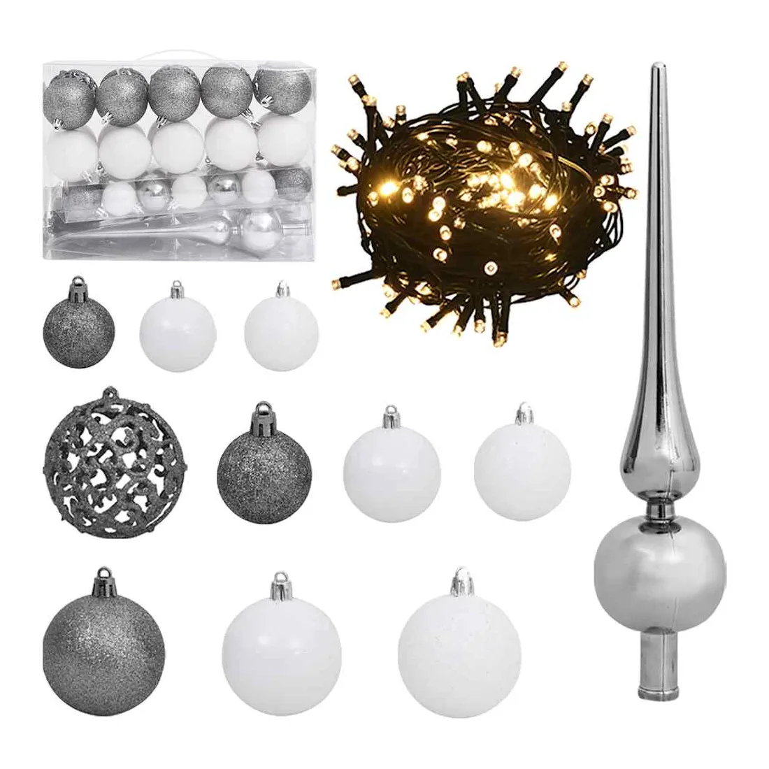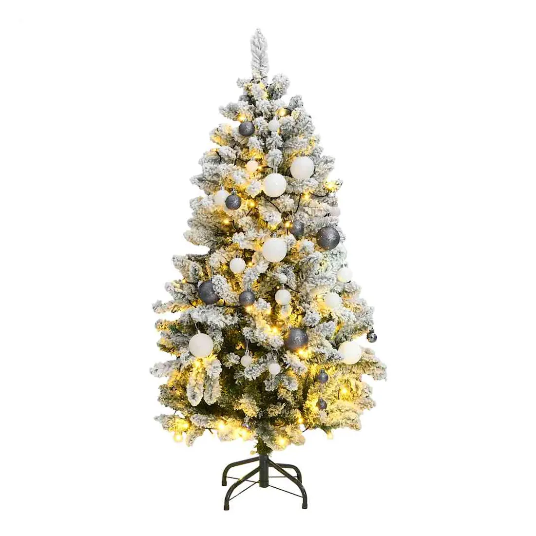 vidaXLLivré avec de belles décorations de vacances, ce sapin de Noël artificiel à charnières avec LED attirera tous les regards dans la soirée et créera l'atmosphère idéale pour ce Noël. Construction à charnières : le sapin de Noël a une construction à charnières, de sorte que les branches se rabattent automatiquement au bon angle. Cela facilitera grandement l'installation de l'arbre dans une forme parfaite et vous fera également gagner du temps.8 modes d'éclairage : la guirlande lumineuse LED a 8 effets d'éclairage différents (combinaison, vague, séquentiel, lueur lente, poursuite/courant d'eau, extinction lente, scintillement/clignotement et continu). Vous pouvez changer de mode d'éclairage en appuyant sur le bouton de l'USB pour créer différentes ambiances de vacances.Belle décoration : le sapin de Noël moderne est décoré de neige blanche artificielle, créant un look attrayant. Ces boules de Noël brillantes sont disponibles en trois tailles différentes, ce qui apporte plus de possibilités pour votre décoration DIY.Support robuste : le support en métal offre à votre arbre de Noël une robustesse et une stabilité optimales.Choix économique : vous pouvez réutiliser l'ornement de vacances chaque année, ce qui constitue une option économique par rapport à l'obtention d'un vrai sapin. Bon à savoir :Nous recommandons de vous réserver 30 à 45 minutes après l'assemblage pour façonner correctement l'arbre en épluchant les branches et en écartant les pointes pour donner aux branches un aspect plus charnu.Ce produit est doté d'un connecteur USB qui nécessite une source d'alimentation certifiée de USB 5V (non incluse).Veuillez vous assurer que la connexion USB est branchée à l'intérieur dans un environnement sec.