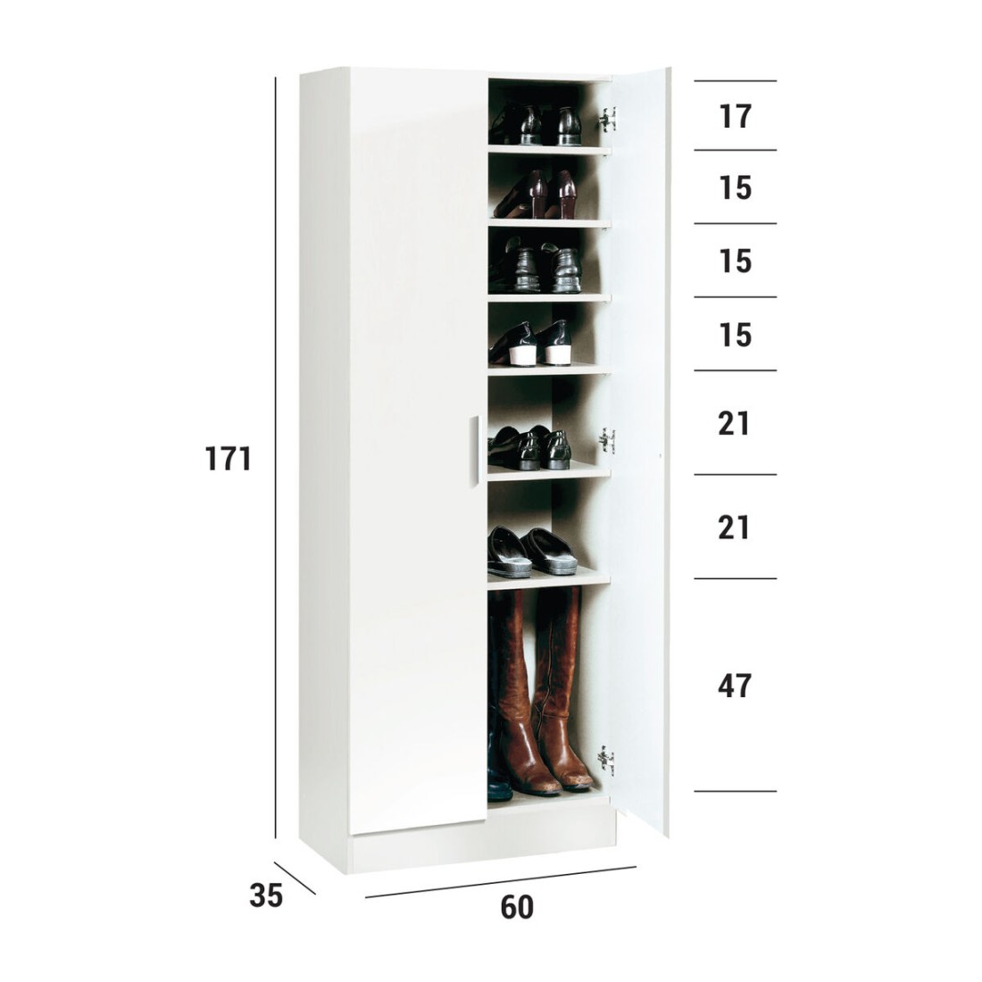 Schoenenkast Alexandra House Living Wit 59 x 171 x 35 cm 2 deuren 7 Planken