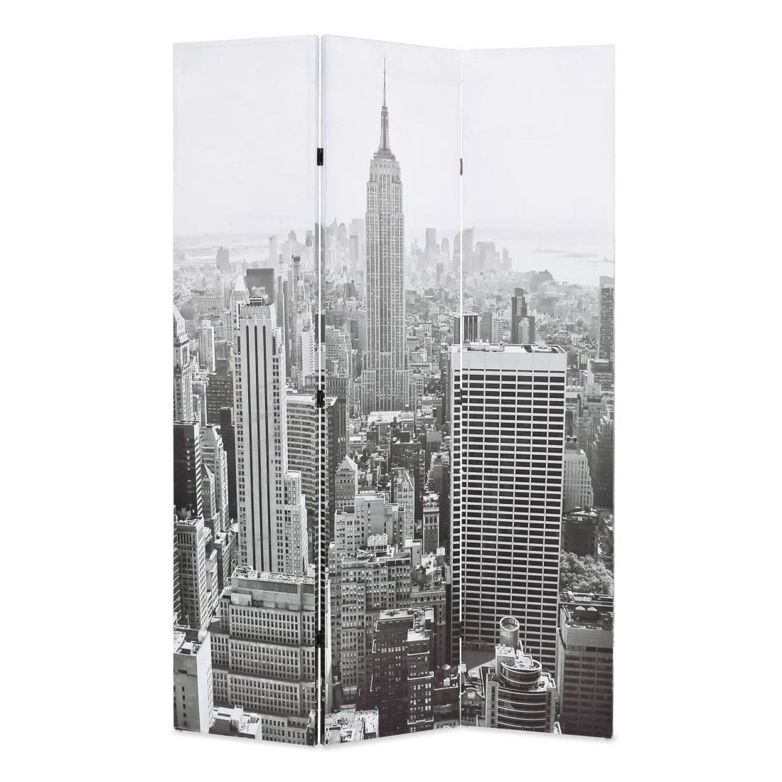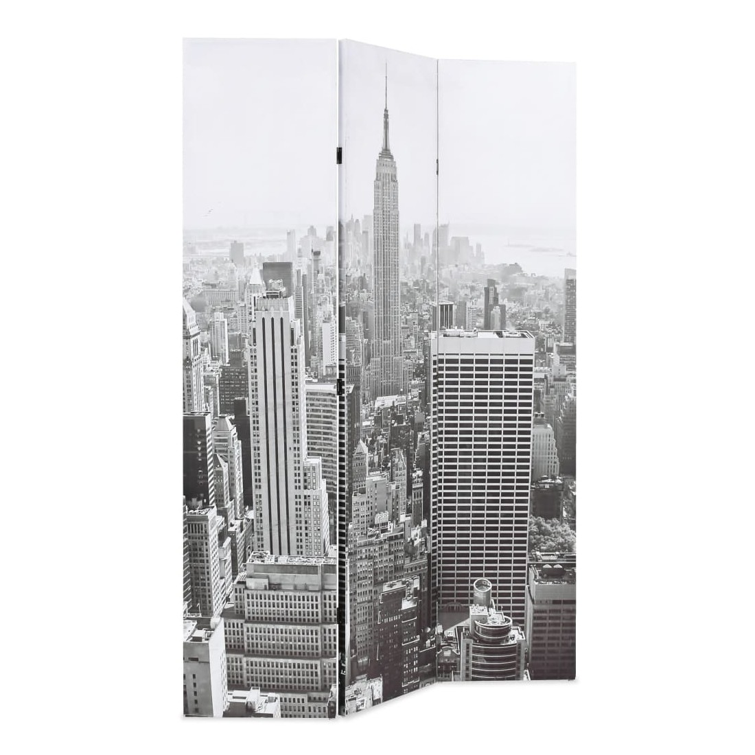 Cette cloison de séparation de 120 cm de largeur et de 170 cm de hauteur est idéale pour créer un espace intime ou séparer une partie de la chambre. Elle ajoutera une touche pratique et décorative à votre chambre à coucher, salon ou bureau. La cloison de séparation a un cadre en bois solide et est recouverte de toile résistante avec une impression photo spectaculaire représentant une vue de jour de New York et le magnifique Empire State Building en noir et blanc et ajoutera une touche de charme moderne à votre intérieur. La cloison de séparation de pièce peut également être facilement repliée pour économiser de l'espace lorsqu'elle n'est pas utilisée.