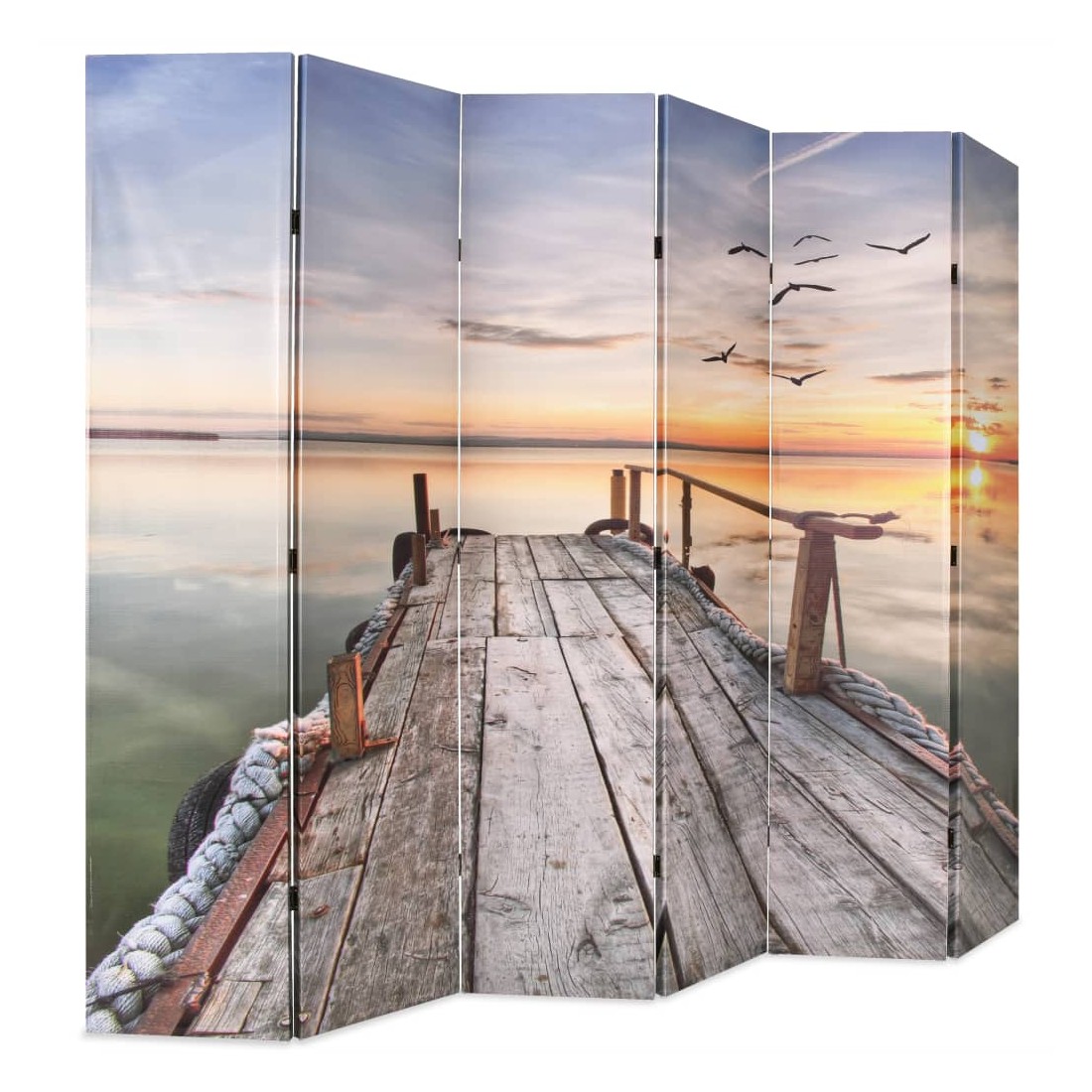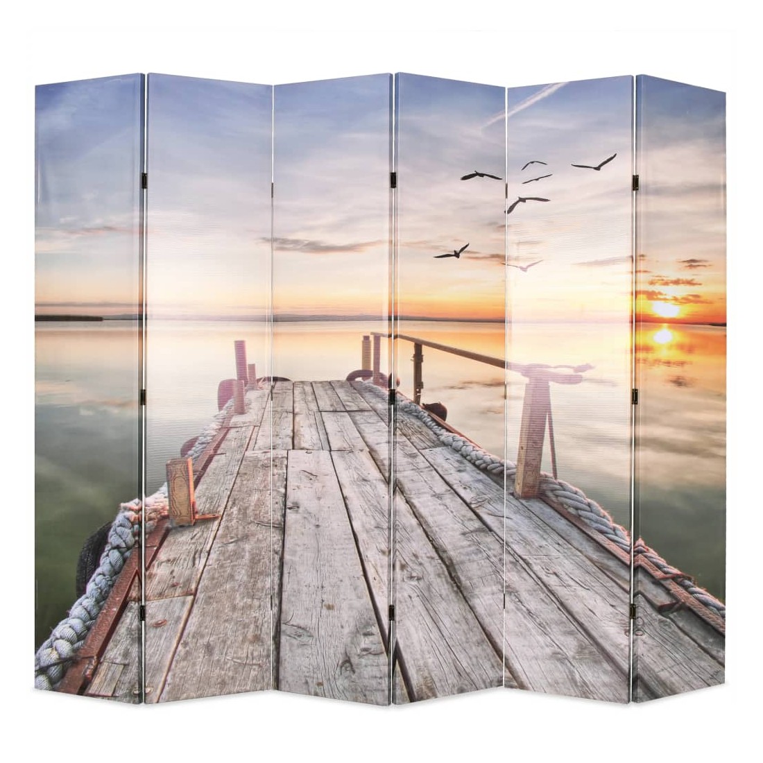 Cette cloison de séparation, mesurant 228 cm de largeur et 170 cm de hauteur, est idéale pour créer un espace intime ou séparer une partie de la chambre. Elle ajoutera une touche pratique et décorative à votre chambre à coucher, salon ou bureau. Le paravent a un cadre en bois solide et est recouvert de toile durable qui a une belle impression photo représentant un lac au coucher du soleil et créera une ambiance paisible dans votre chambre. La cloison de séparation peut également être facilement repliée pour économiser de l'espace lorsqu'elle n'est pas utilisée.