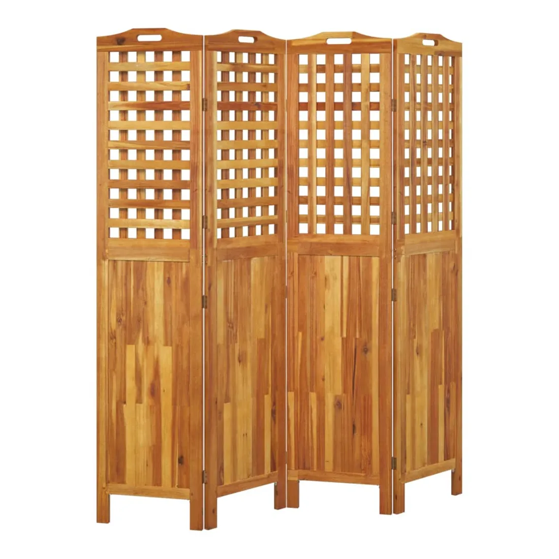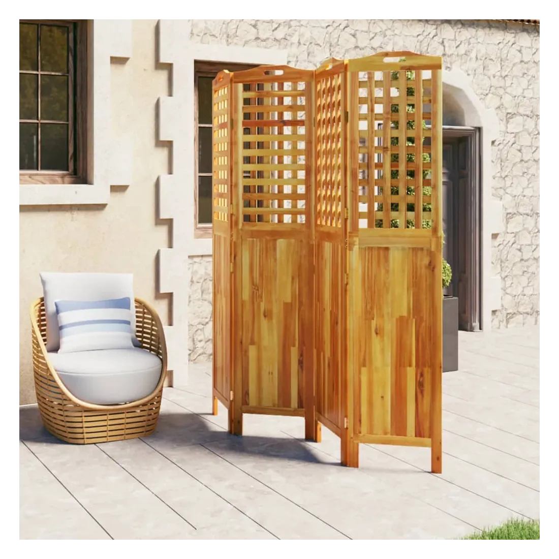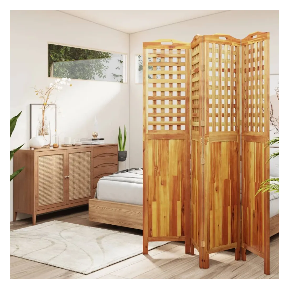 Cette cloison de séparation en bois peut diviser une pièce en plusieurs parties pour offrir un espace privé et protéger votre intimité. Bois d'acacia massif : le bois d'acacia massif est un matériau naturel magnifique. Le bois d'acacia un bois dur tropical, qui est dense, robuste et durable.Fonction polyvalente : vous pouvez non seulement utiliser l'écran de séparation de pièce pour séparer la chambre à coucher et le salon, ou bloquer une partie de la pièce selon vos besoins, mais aussi le placer sur le côté de la fenêtre pour bloquer la lumière directe du soleil. Bien sûr, vous pouvez même utiliser l'écran comme mur de fond. Design pliable : cette cloison de séparation à 4 panneaux est pliable, elle est donc facile à ranger sans prendre beaucoup de place.