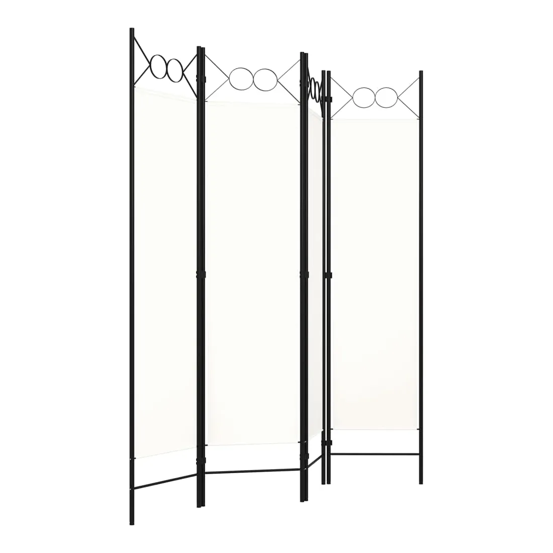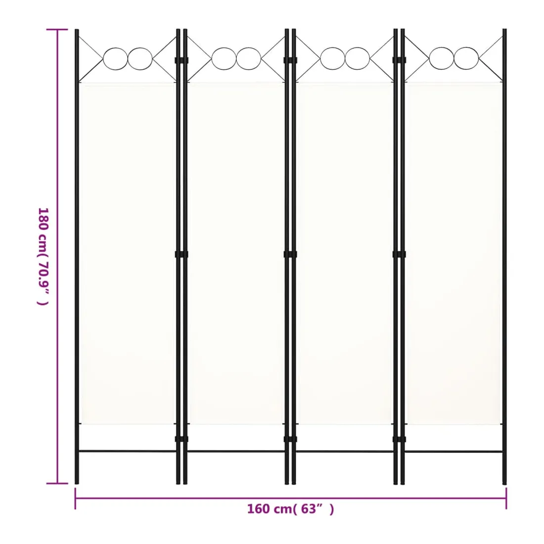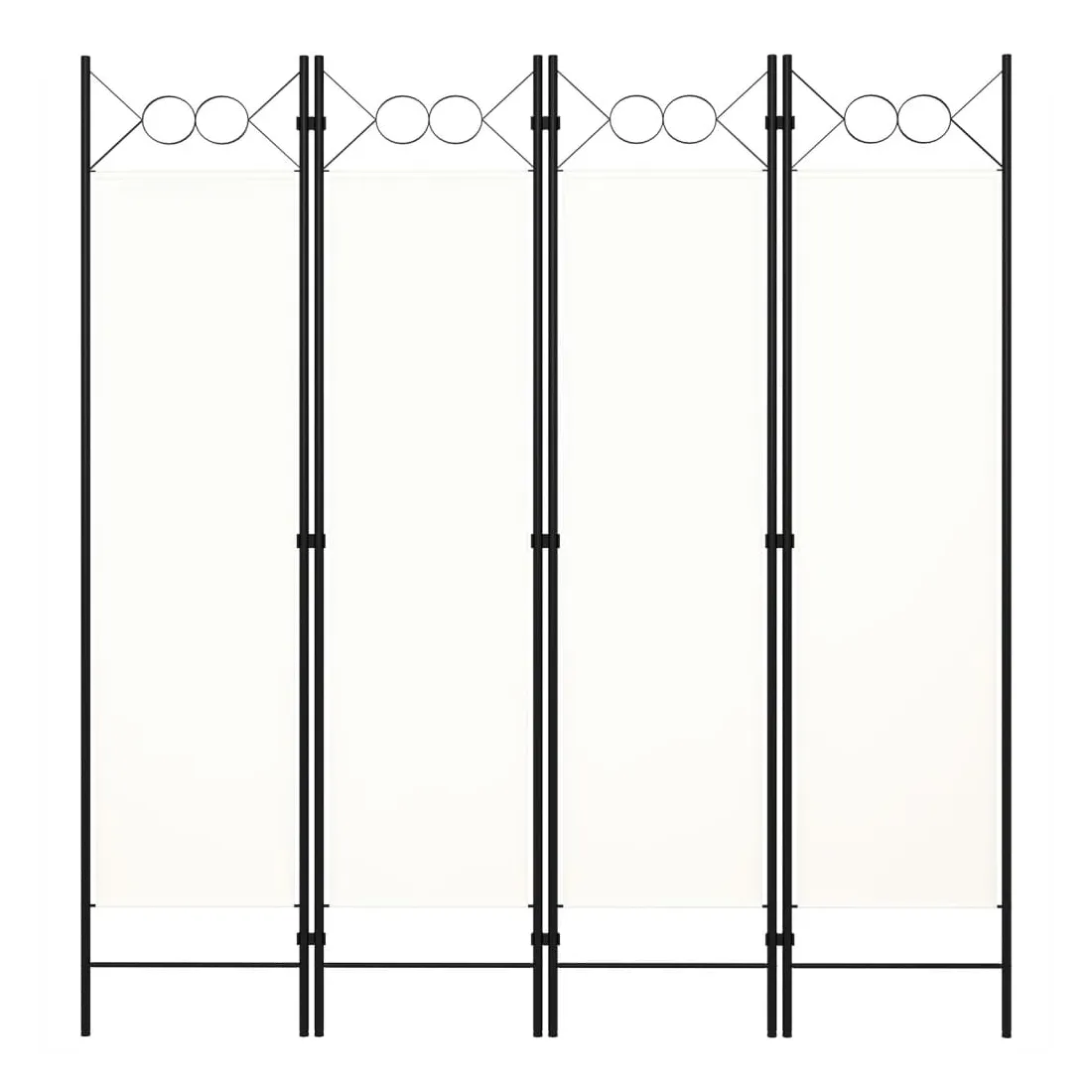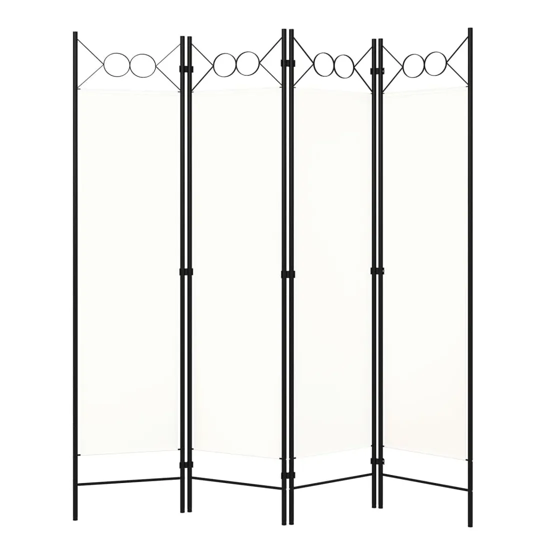 Notre cloison de séparation autoportante et pratique à 4 panneaux peut être utilisée comme cloison, écran d'intimité ou pour la décoration. Elle offre une intimité idéale dans la chambre à coucher ou un compartiment de la pièce. Le dessus avec un design circulaire ajoute une élégance supplémentaire. Cette cloison de séparation, composée d'un cadre en fer enduit de poudre et d'écrans en tissu, peut être facilement pliée lorsqu'elle n'est pas utilisée. Remarque : le tissu ne bloque pas complètement toute la lumière.