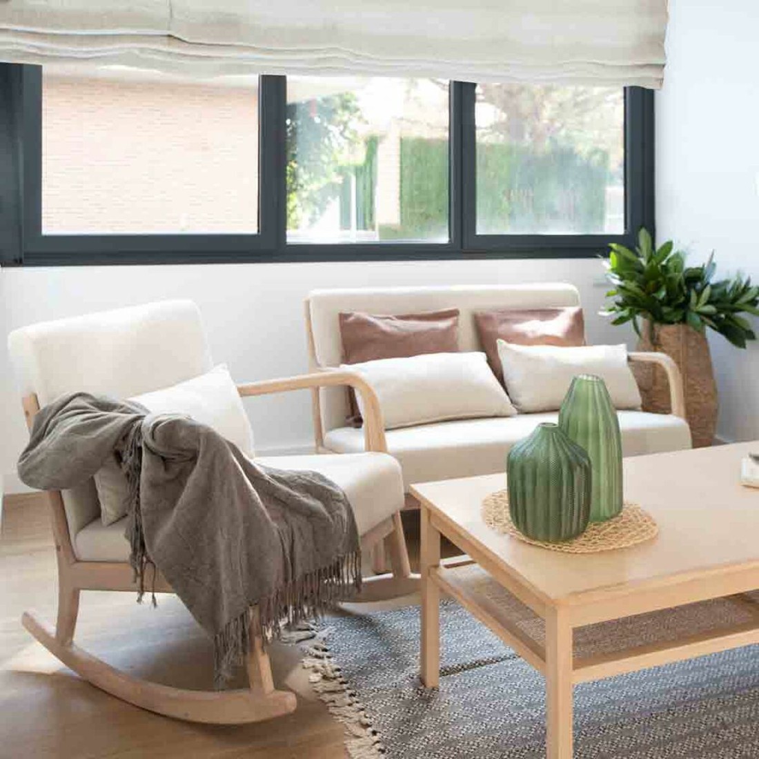Als je een vleugje originaliteit wilt toevoegen aan je huis, dan kan dat met Schommelstoel Alexandra House Living Crème Rubber Katoen Linnen Hout 88 x 78 x 66 cm.